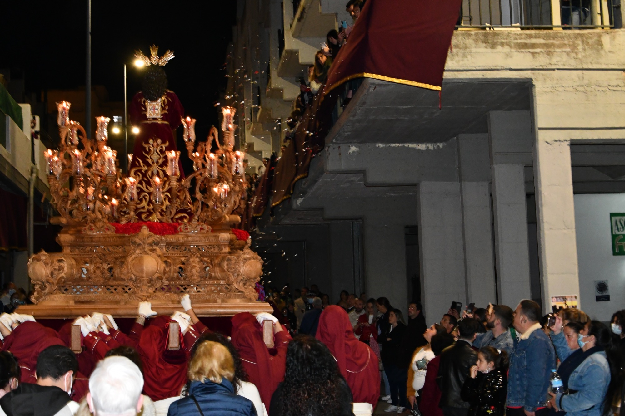 La Venerable Hermandad de Nuestro Padre Jesús Cautivo y Rescatado (Medinaceli) y Nuestra Señora de la Merced procesiona en la noche de hoy, Miércoles Santo, por las calles de San Roque. Ambas imágenes partieron a las 21.00 horas de la Capilla de la Santísima Trinidad, en Los Olivillos, arropadas por un gran número de fieles.