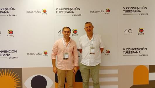El concejal de Turismo del Ayuntamiento de San Roque, Alfonso Valdivia, y el coordinador-técnico de turismo, Carlos Jordan, han asistido a la V Convención de Turespaña, en Cáceres.