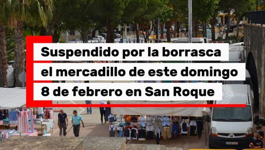 El Ayuntamiento de San Roque informa de la suspensión del mercadillo previsto para mañana, domingo, como medida preventiva ante las previsiones meteorológicas adversas asociadas a la borrasca “Marta”.