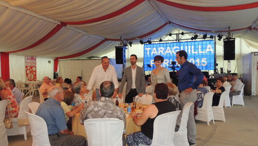 La Feria de Taraguilla ha rendido un homenaje a sus mayores con una cena, celebrada anoche en la en la Caseta Municipal a partir de las 20.30 horas. Durante la Cena de Honor a la tercera edad actuaron Sara Familiar y José Luis Palacios.