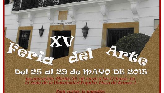 El lunes 25 de mayo comienza, con actuaciones en el Teatro Juan Luis Galiardo, la XV Feria del Arte de la Universidad Popular. La inauguración oficial será el martes 26 en el edificio del antiguo Ayuntamiento, en la Plaza de Armas.
