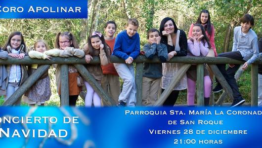 El Coro Apolinar, formado por alumnos y alumnas del CEIP Maestro Apolinar, ofrecerá mañana, viernes, en la Parroquia de Santa María Coronada un Concierto de Navidad. La velada comenzará a las 21.00 horas, y los asistentes podrán disfrutar de...