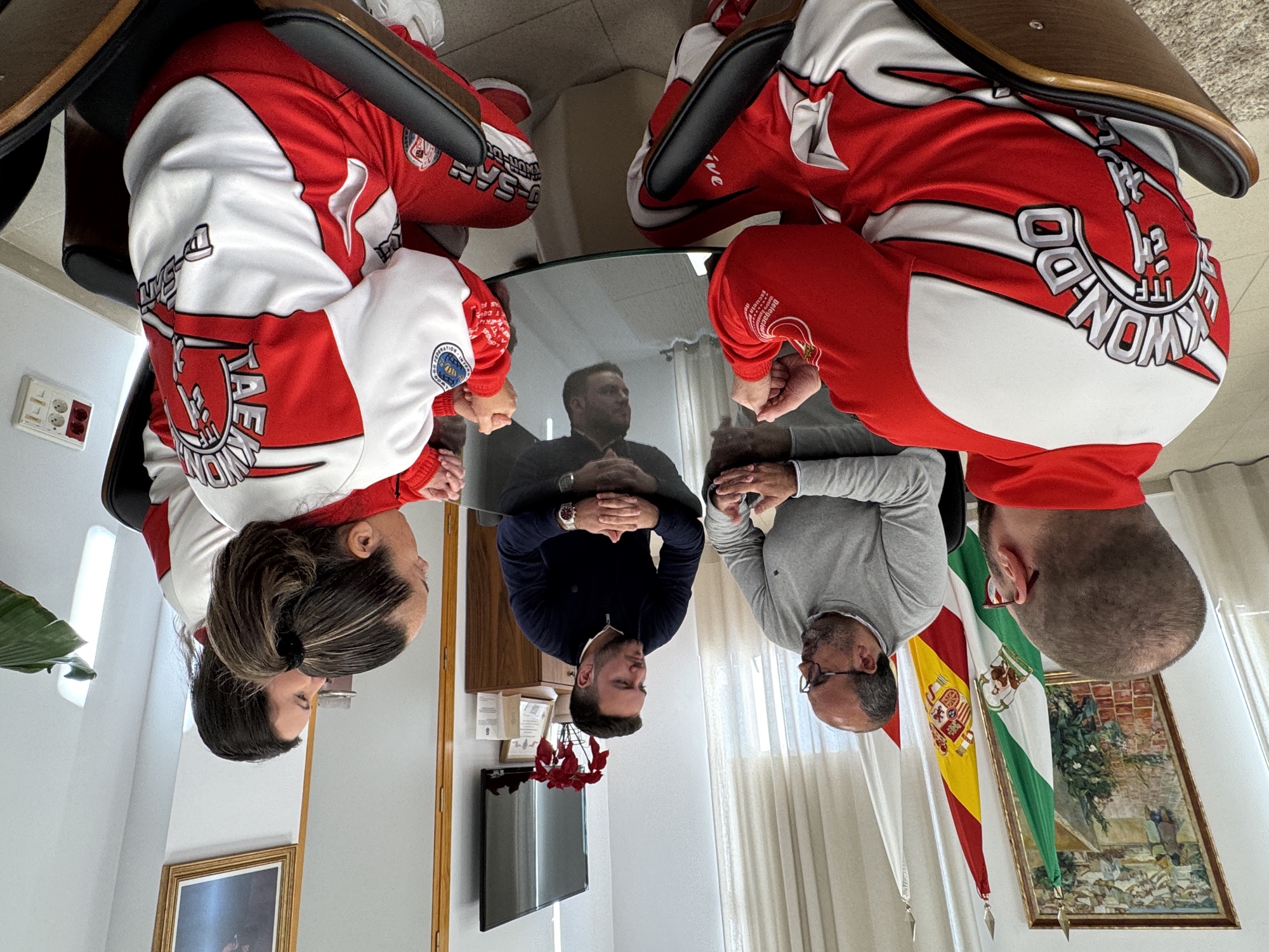 El alcalde accidental de San Roque, Óscar Ledesma, junto al teniente de alcalde de Deportes, Fernando Vega, han recibido a los responsables del club de taekwondo Do San.
