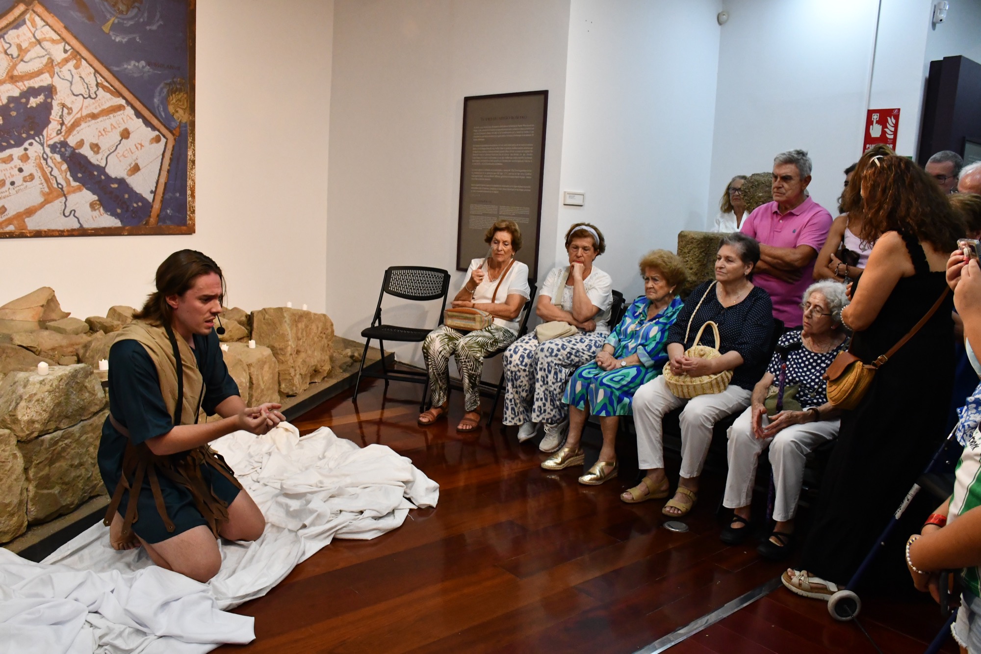 La compañía sanroqueña Sinsentido Teatro, que dirige Nadia Zumelaga, ofreció en la tarde del jueves un paseo por el Museo Municipal bajo el título de “Mitos Carteienenses”, donde personajes icónicos y mitológicos de la historia romana explicaron la cultura y sociedad de la ciudad de Carteia, apoyándose en las piezas expuestas en el propio museo. El éxito de asistencia fue tal que se realizaron dos pases para que el público pudiera disfrutar con totalidad de la guía teatralizada.