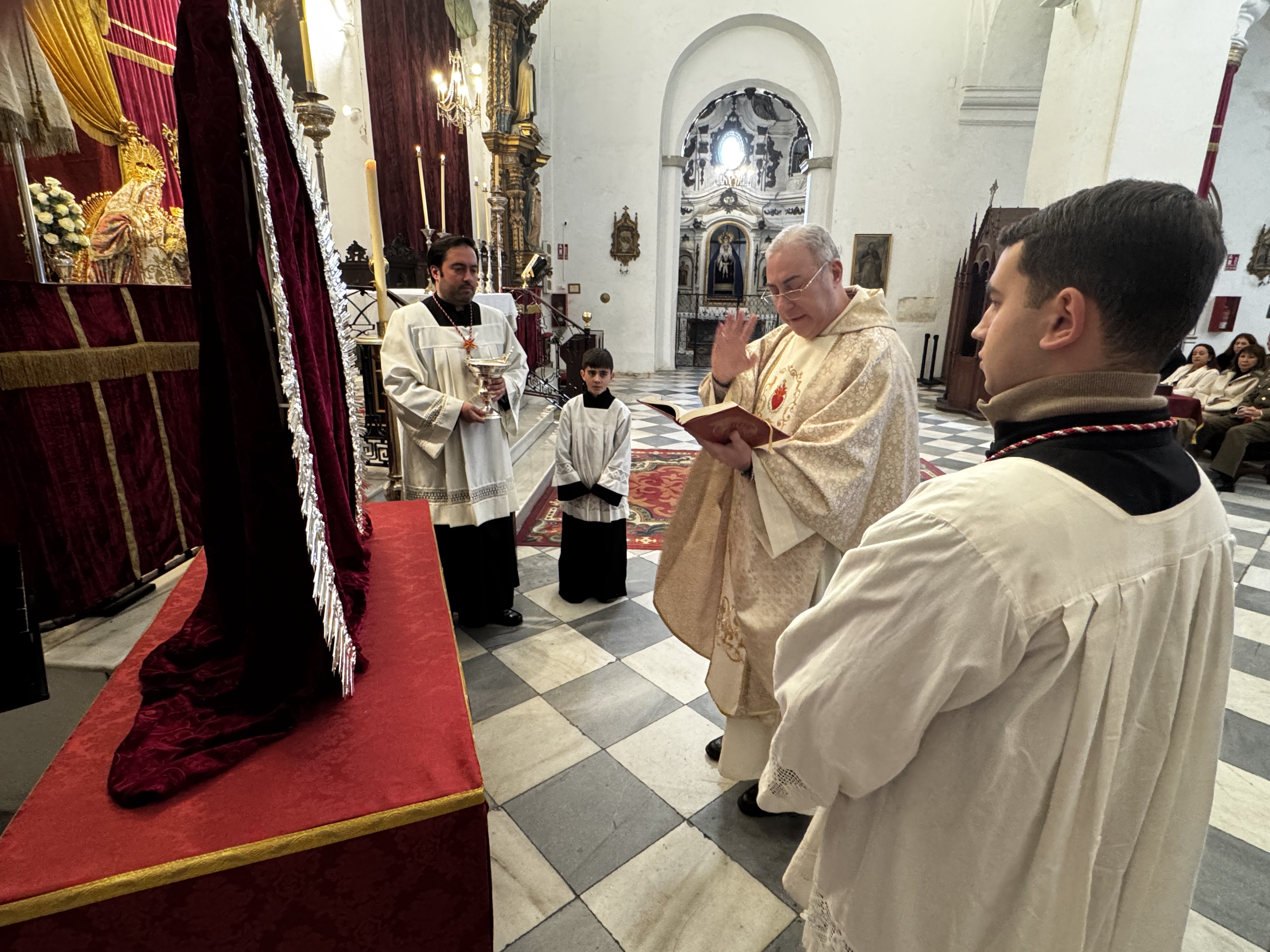 La imagen de Santa María la Coronada, se ha presentado vestida de reina en el presbiterio de nuestra Parroquia con motivo del CCCXI aniversario de su venida de Gibraltar, por el que celebramos hoy su función conmemorativa.