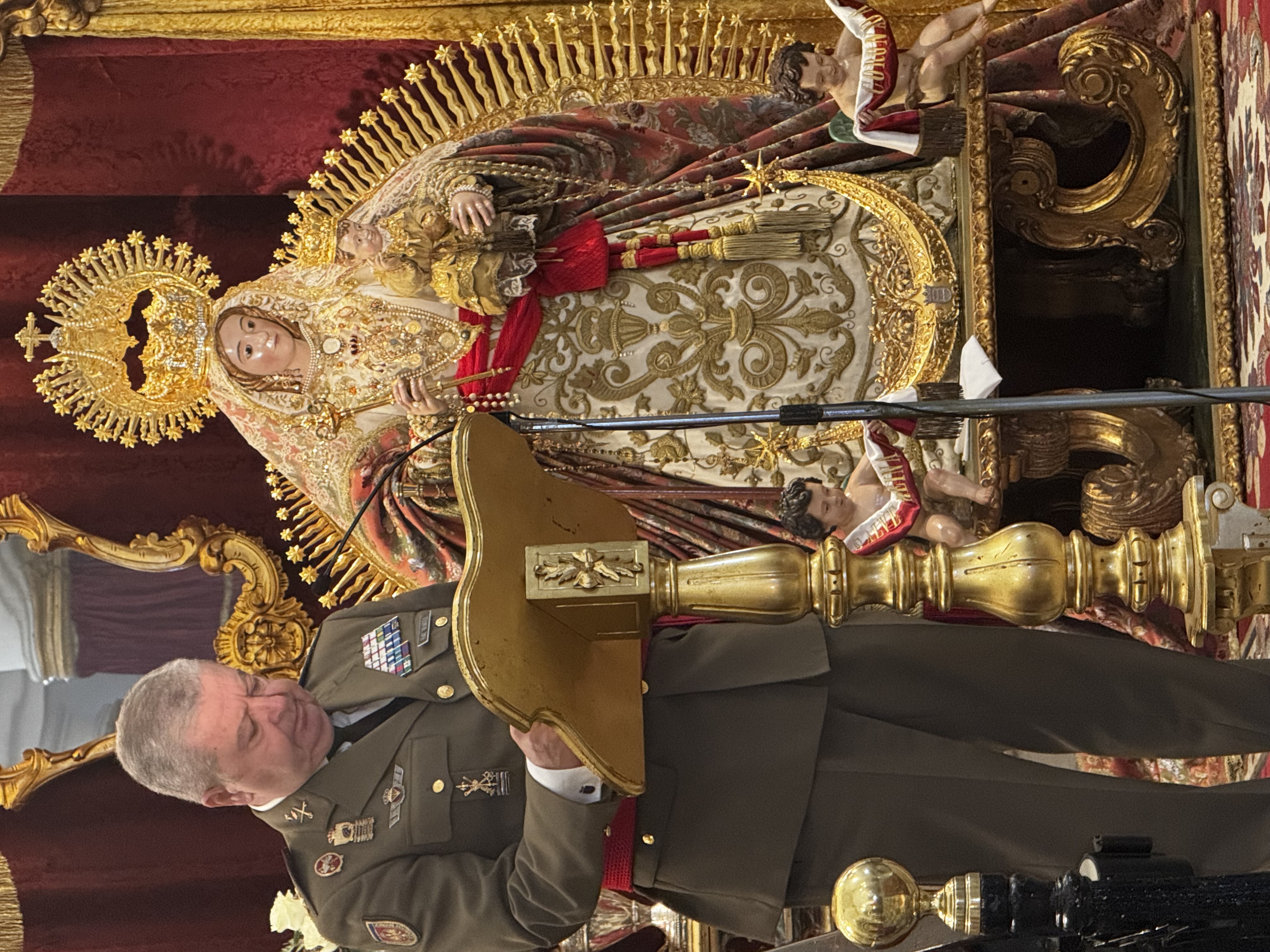 “Hoy hago, en calidad de humilde soldado de España, esta donación de mi faja de general del ejército de tierra. Llevarla conlleva una enorme responsabilidad, por tanto este objeto que ofrezco a la Virgen no es solo un ornamento, es el valor de representar una vida de dedicación a España y, aunque el ofrecimiento es a título personal, también enaltezco a los soldados españoles que defienden a su patria y sus gentes”, señaló el general.