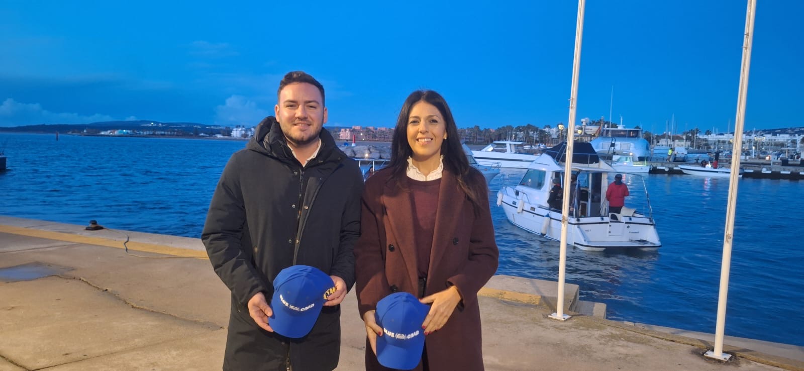 Los tenientes de alcalde de Deportes, Fernando, Vega, y Belén Jiménez, se desplazaron al puerto Sotogrande y han saludado a los participantes antes de embarcarse para celebrar la competición.