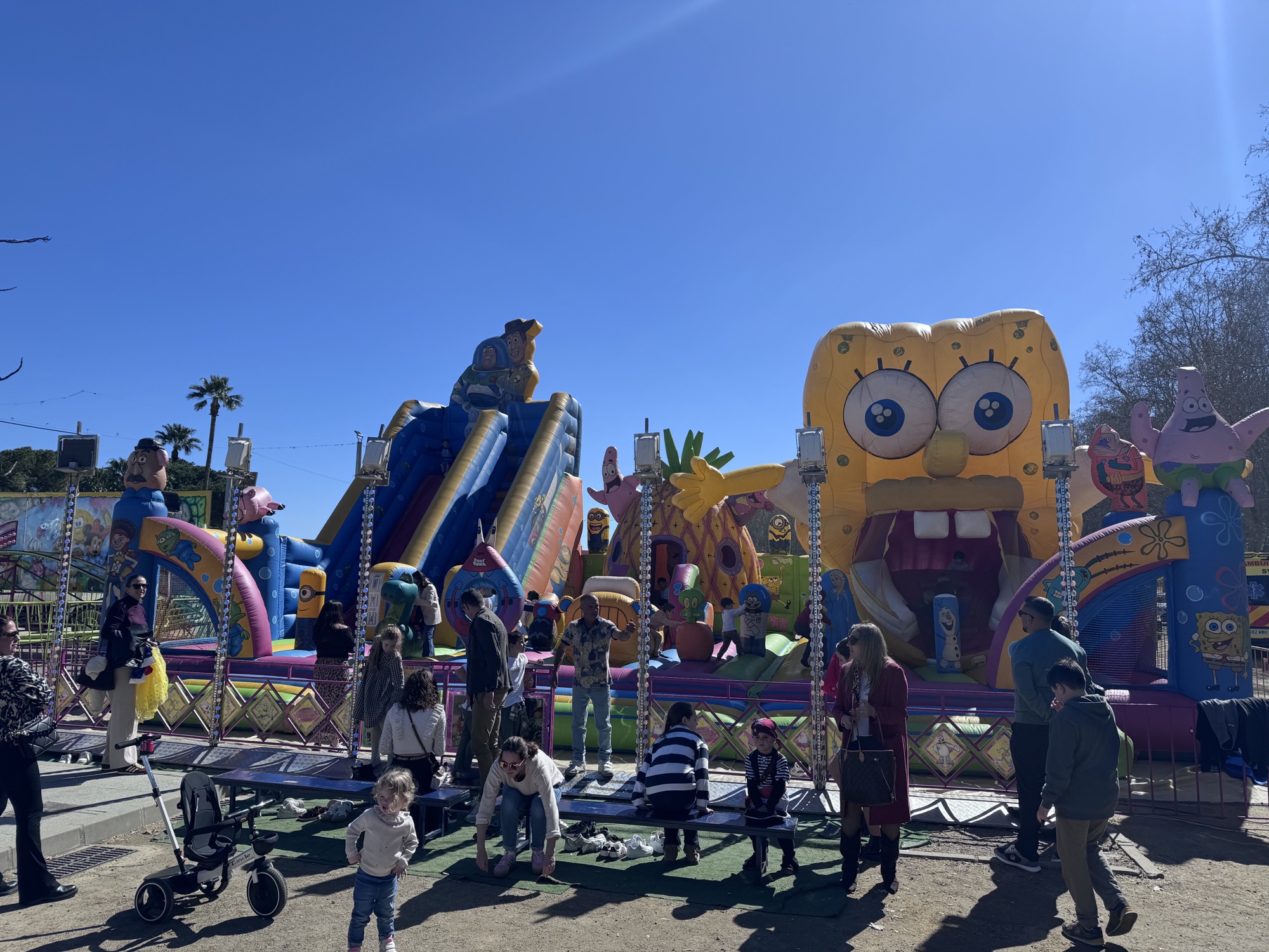 La fiesta infantil, amenizada con varios personajes de ficción y celebrada en la carpa situada en el recinto ferial, ha iniciado la jornada de domingo del Carnaval de Guadiaro 2026. Niños y niñas de la barriada han disfrutado de esta actividad y de las diversas atracciones de feria que se han instalado durante todo el fin de semana.