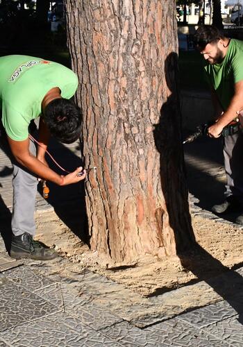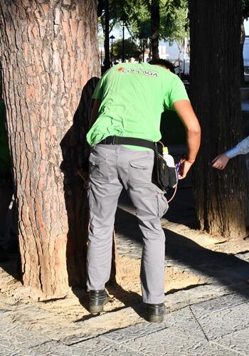 Con el objetivo de evitar la proliferación de la oruga de la procesionaria del pino en los primeros meses de 2026, este jueves se ha iniciado en la Alameda Alfonso XI el tratamiento de endoterapia en todos los pinos de las zonas urbanas del municipio. Estas inyecciones no suponen ningún daño para el árbol, pero sí resultan fatales para los insectos, que fallecen antes de convertirse en un peligro potencial para niños y mascotas.