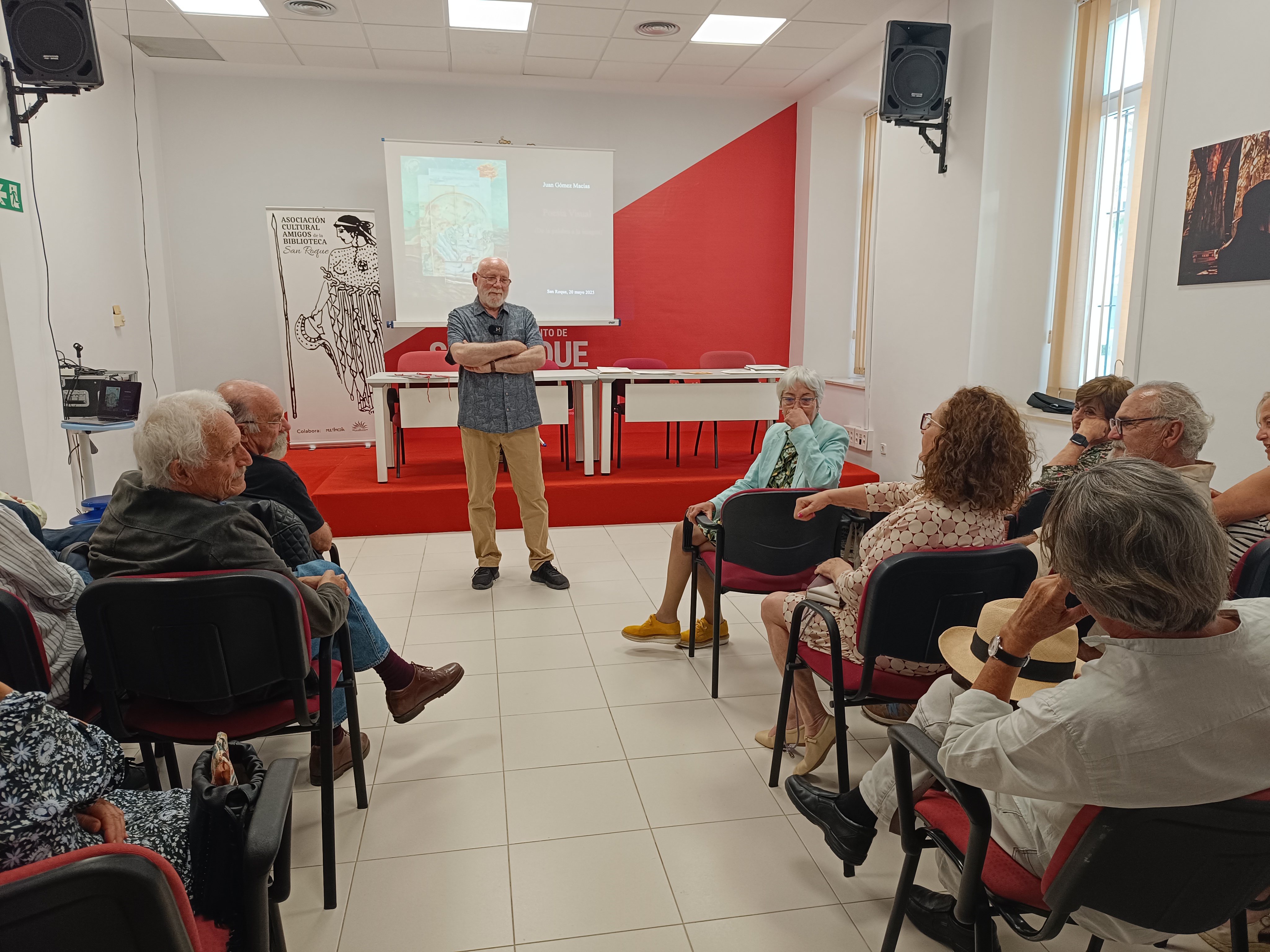 La Asociación Cultural Amigos de la Biblioteca de San Roque organizó el pasado martes una conferencia en el edifico Diego Salinas sobre la poesía visual, a manos de Juan Gómez Macías.