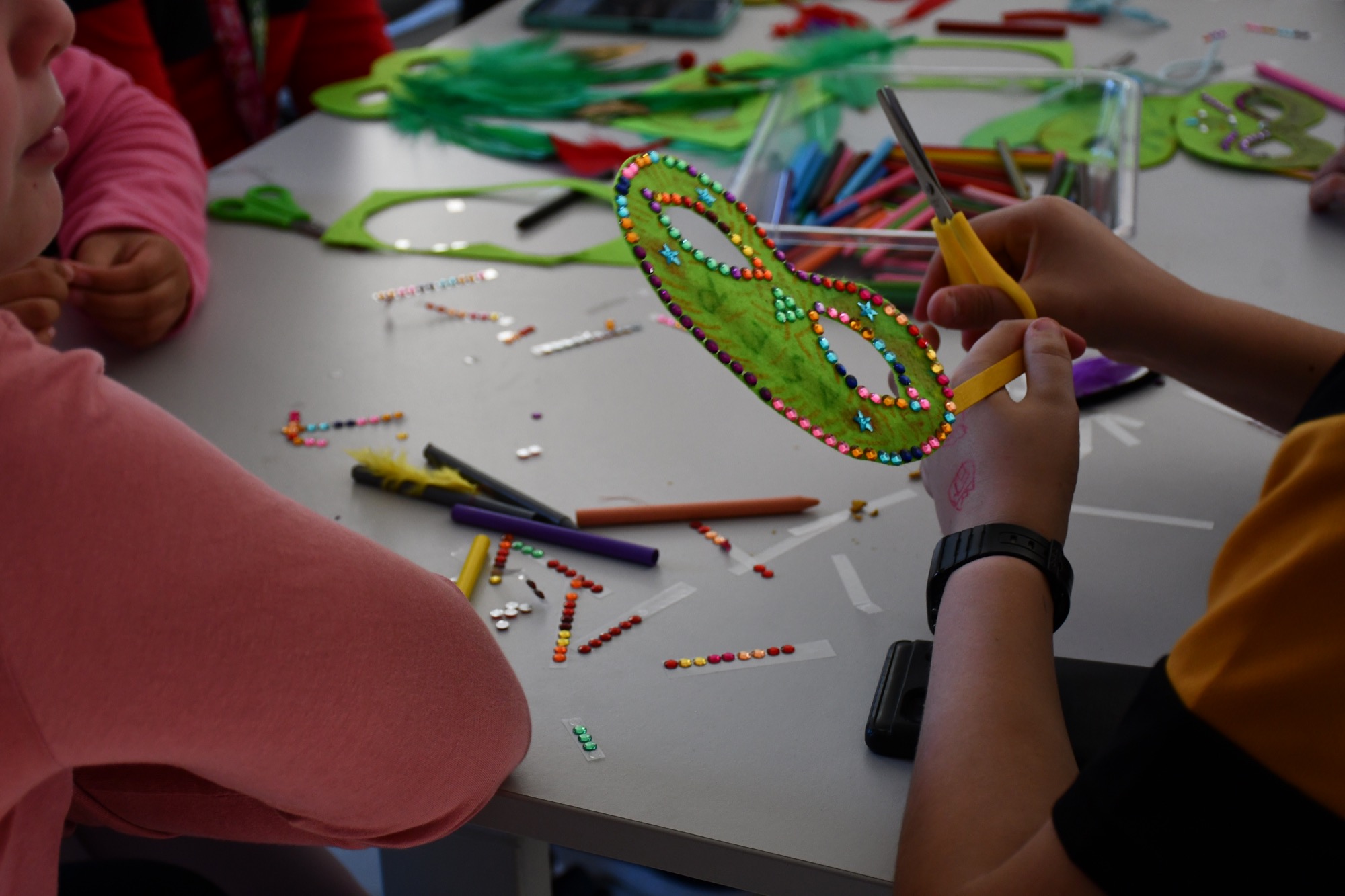 Los talleres de máscaras de carnaval gratuitos, organizados por la delegación de Participación Ciudadana, se van a llevar a cabo en todo los núcleos del municipio para que todos los niños de San Roque tengan la oportunidad de disfrutarlos. Este martes, los niños de Taraguilla y Estación desarrollaron su creatividad en estos talleres.