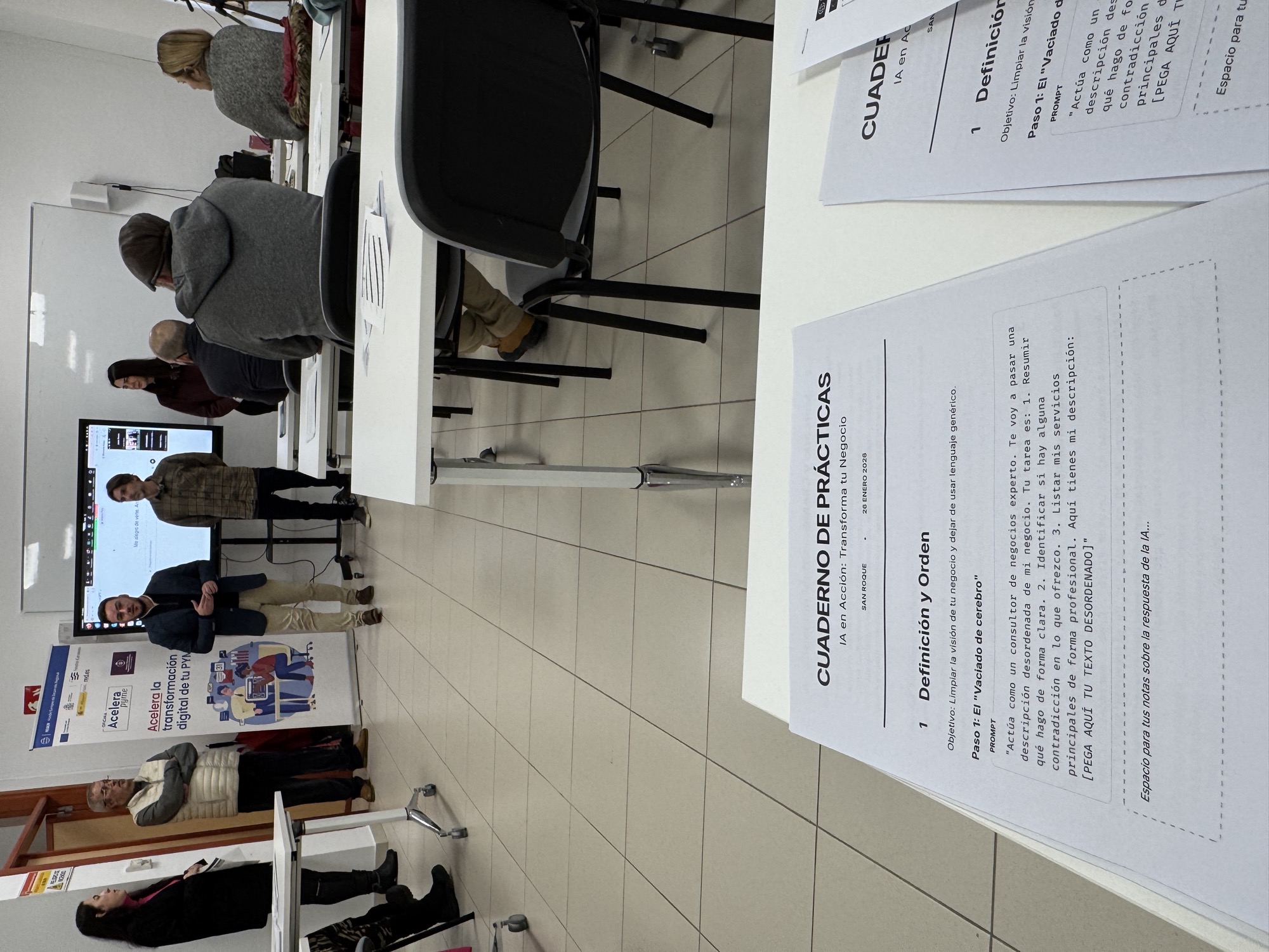 Bajo el título “IA en acción, transforma tu negocio. Un antes y un después en tu forma de gestionar”, el ponente Javier Durán ofreció una charla de dos horas de duración auspiciada por la Oficina “Acelera Pyme”, el Colegio de Ingenieros Industriales, la Junta de Andalucía, y el Ayuntamiento de San Roque, a través de la delegación de Empleo y Amdel.