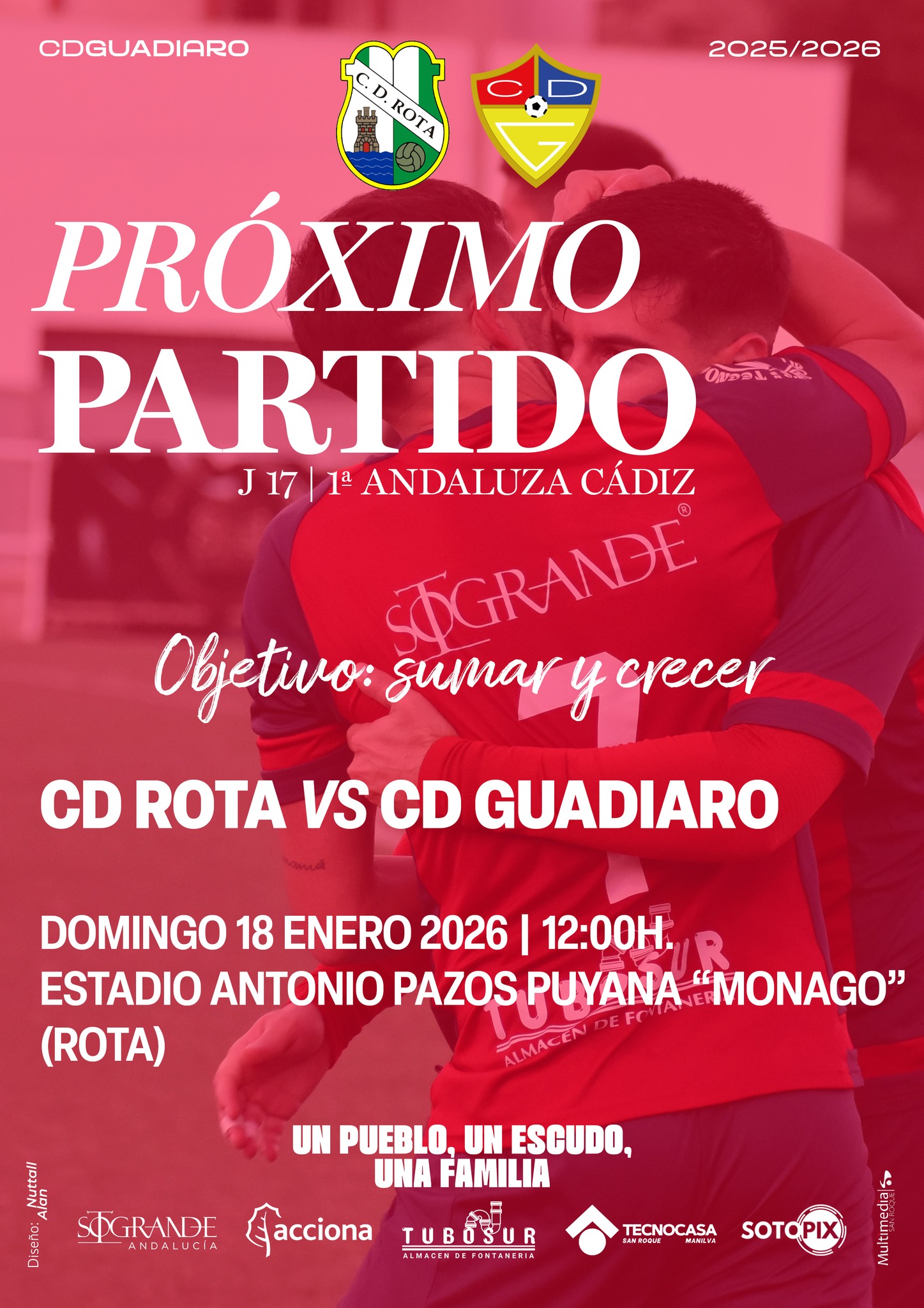 El encuentro corresponde a la jornada 17 de Primera Andaluza Cádiz y será en el Estadio Municipal Antonio Pazos Puyana “Monago” de Rota, al mediodía.