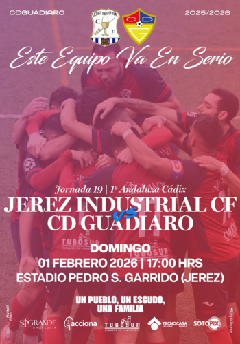 Este domingo 1, el CD Guadiaro juega a domicilio y será contra el Jerez Industrial, equipo que va por delante, en el puesto 7 con 26 puntos, aunque cayó en su último partido contra el Barbate CF por 2-0.