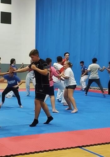 La modalidad se ha iniciado en exclusiva en el Pabellón del casco con más de una veintena de mujeres y jóvenes dispuestos a mejorar su forma física y mental a la vez que aprenden a defenderse y ganar en autoestima y disciplina.