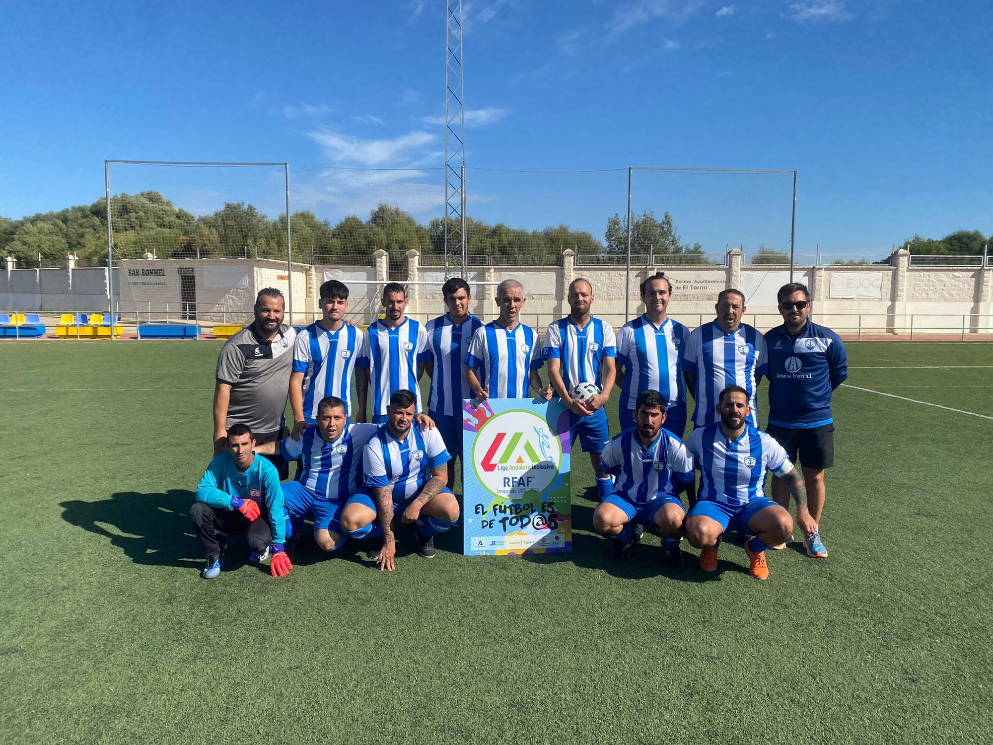 Con el lema “El fútbol es de tod@s” comenzó este domingo la temporada 2025/2026 de la Liga Andaluza Inclusiva. El recién fundado equipo del Recreativo Puente Mayorga se desplazó a la pedanía jerezana de El Torno para jugar su primer partido, que finalizó con victoria por 7 a 0 frente al Balón de Cádiz. Los azulones están encuadrados en la Segunda División Cádiz de esta liga.