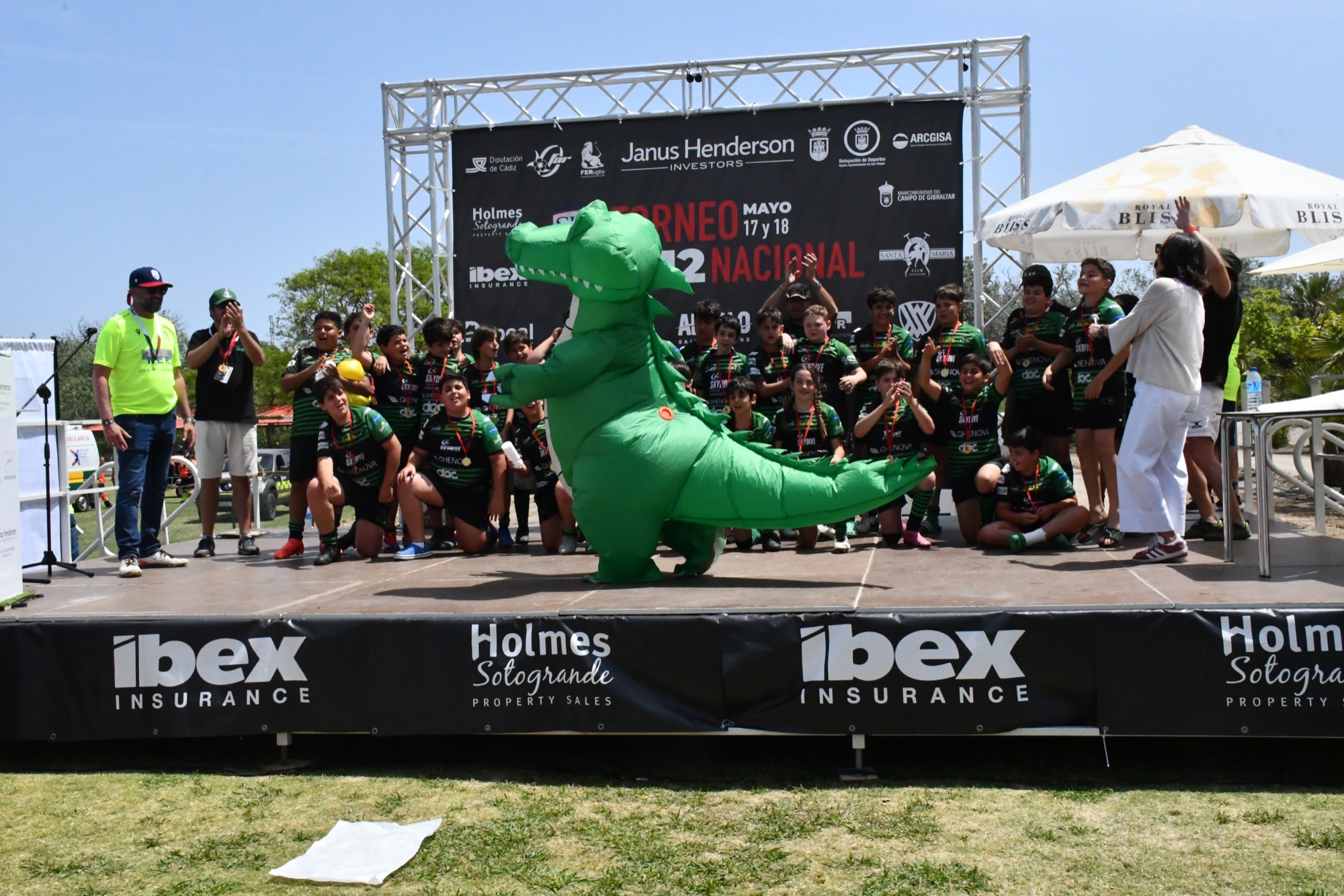 Autoridades municipales sanroqueñas han participado este domingo en la entrega de premios con la que se ha puesto fin al Torneo Nacional de Rugby M12 que comenzó el sábado en Santa María Polo. Todos los equipos participantes, casi medio centenar, han recibido su reconocimiento por el gran nivel deportivo y por el extraordinario comportamiento mostrado dentro y fuera del campo de juego.