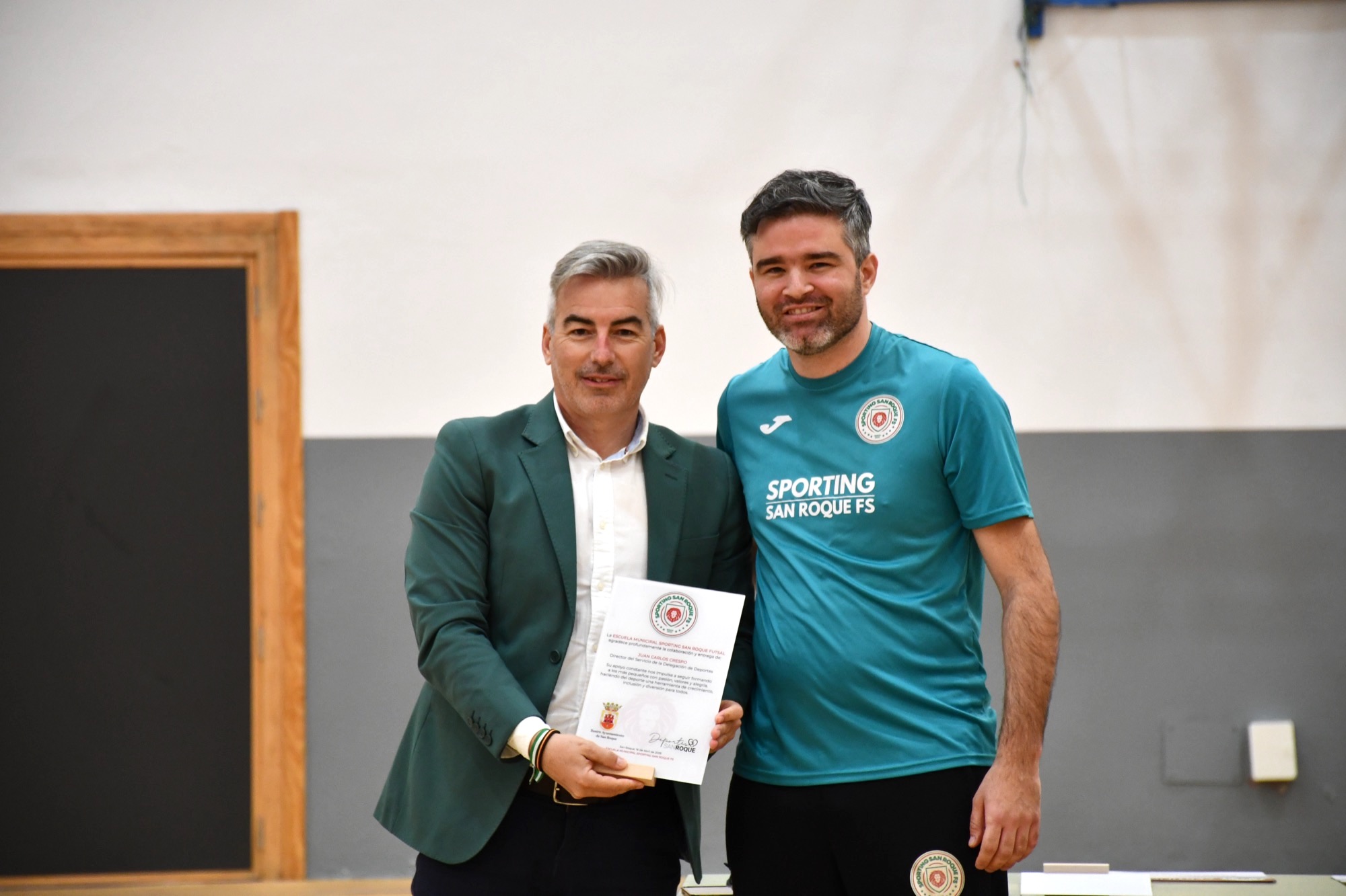 El teniente de alcalde David Ramos ha participado este miércoles en la entrega de diplomas a los jóvenes participantes en el III Campus de Fútbol Sala de Semana Santa. Además, tomaron parte en esta ceremonia miembros de la directiva del club organizador, el Sporting San Roque Futsal, así como el director del Servicio de Deportes, Juan Carlos Crespo.