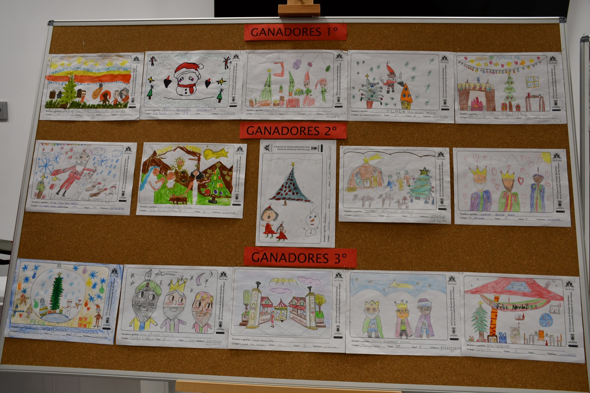 El jurado ha elegido cinco dibujos de cada curso, desde primero a sexto de primaria, a cuyos autores se les ha entregado un reloj inteligente. De entre todas las postales ganadoras, el jurado elegirá una, que será el dibujo de la postal de felicitación navideña del Ayuntamiento para la Navidad del próximo año.
