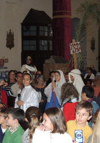 Los pequeños que están recibiendo catequesis para hacer la Comunión en 2016, escenificaron en la tarde de ayer, jueves, el Belén Viviente de la Parroquia Santa María La Coronada de San Roque.