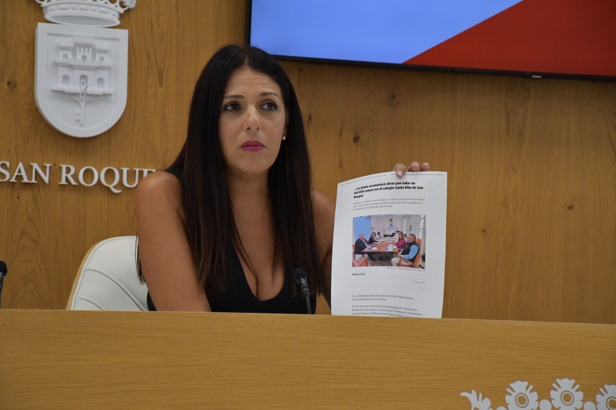 También se refirió Belén Jiménez a la asunción, por parte del Ayuntamiento, de la sustitución de canalizaciones del CEIP Gabriel Arenas, en San Roque Ciudad, por importe de 120.000 euros. Señaló que se ha realizado esta obra, a pesar de ser competencia de la Junta de Andalucía, para que el alumnado del centro pudiera tener agua potable desde el inicio del curso 25/26. “No hemos querido esperar más y hemos actuado”, dijo.