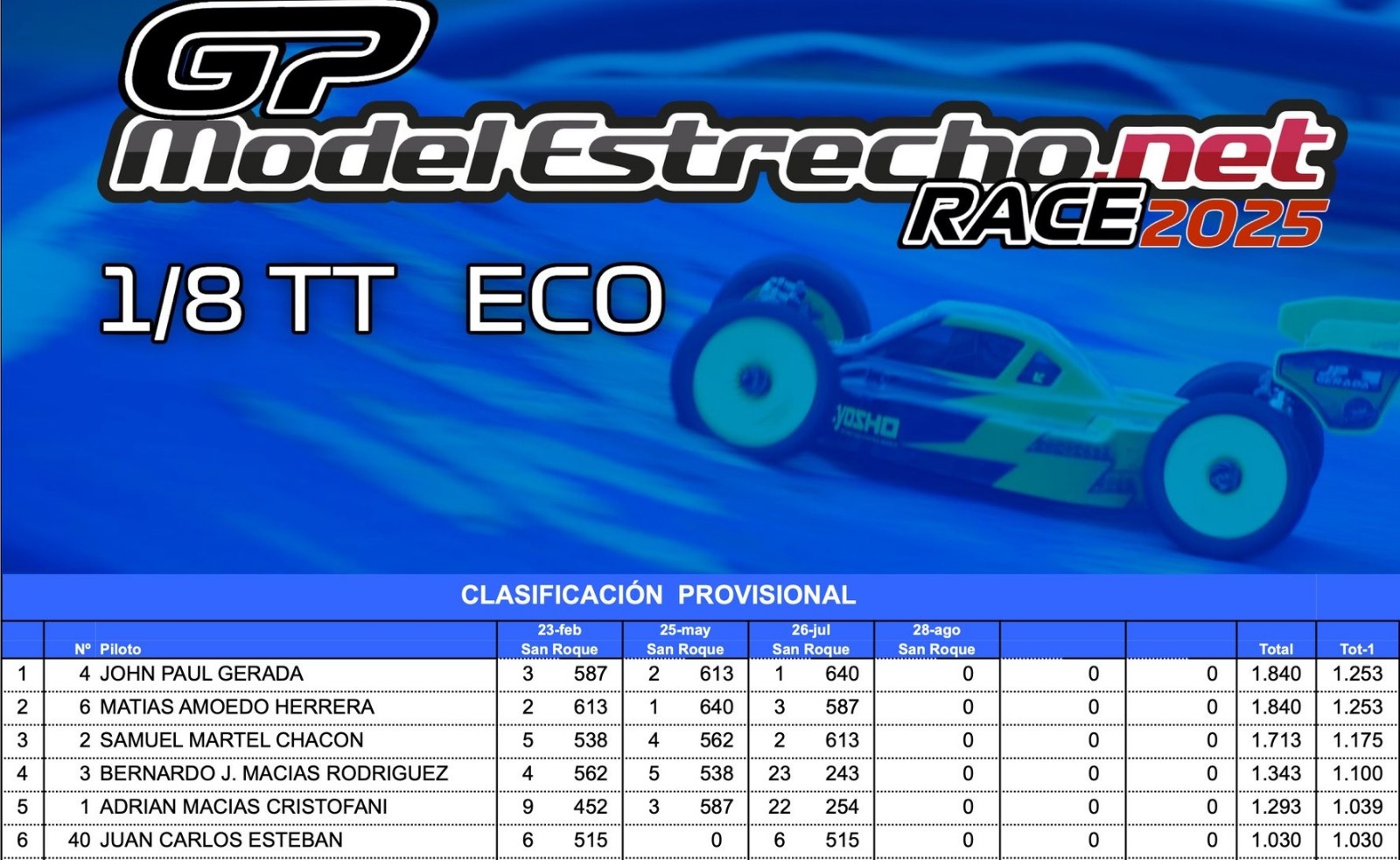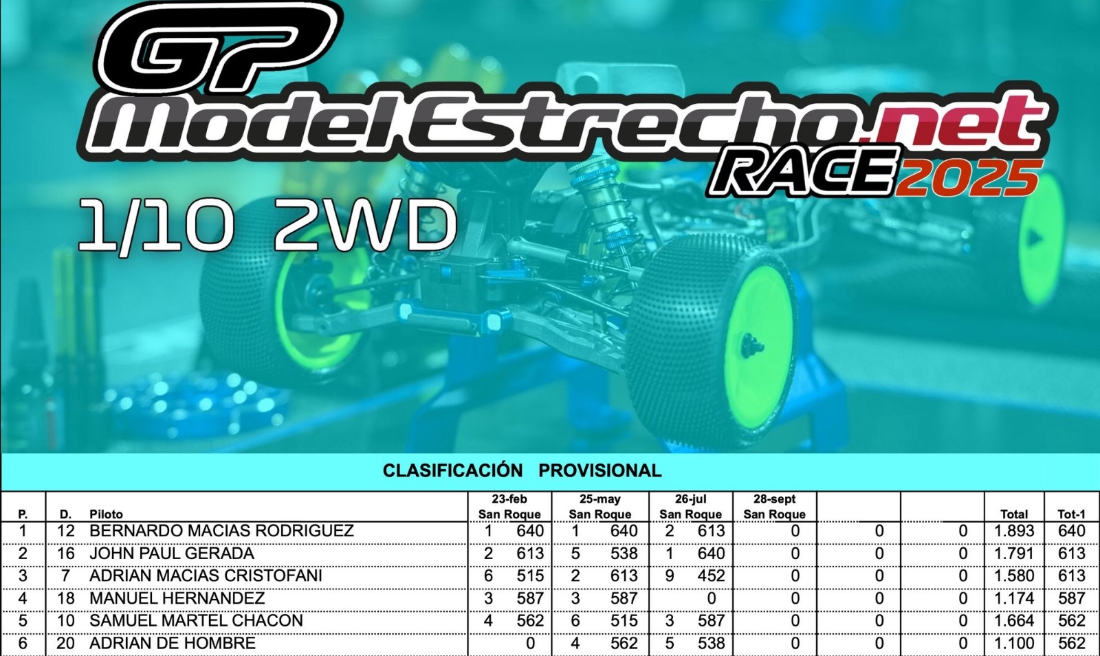 La cuarta y última prueba del GP Modelestrecho de la temporada 2025, donde se decidirán los campeones de cada categoría, se dará el próximo domingo 28 de septiembre en el Club El Estrecho, en San Roque, de 10:00 a 18:00 horas. El día anterior, el sábado 27, habrá entrenos libres a la misma hora.