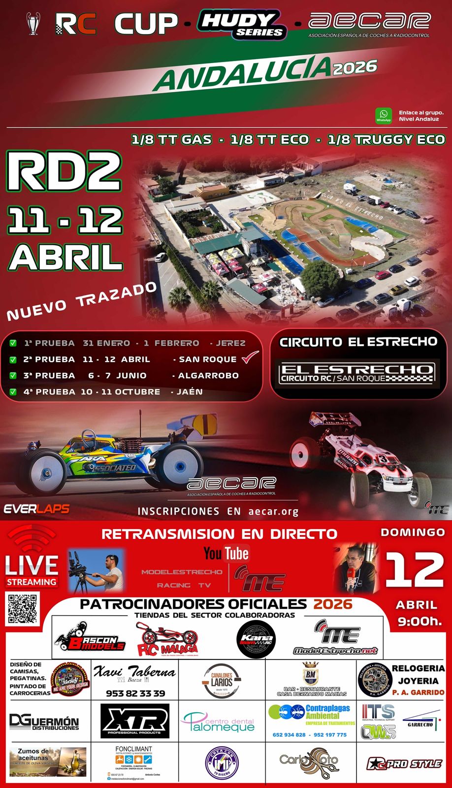 El espectáculo del Campeonato de Andalucía RC CUP HUDY SERIES AECAR aterriza en el Club El Estrecho (San Roque) los próximos 11 y 12 de abril, y lo hace con un giro inesperado que pone a prueba a los mejores pilotos del país, ya que el circuito tiene un nuevo trazado.