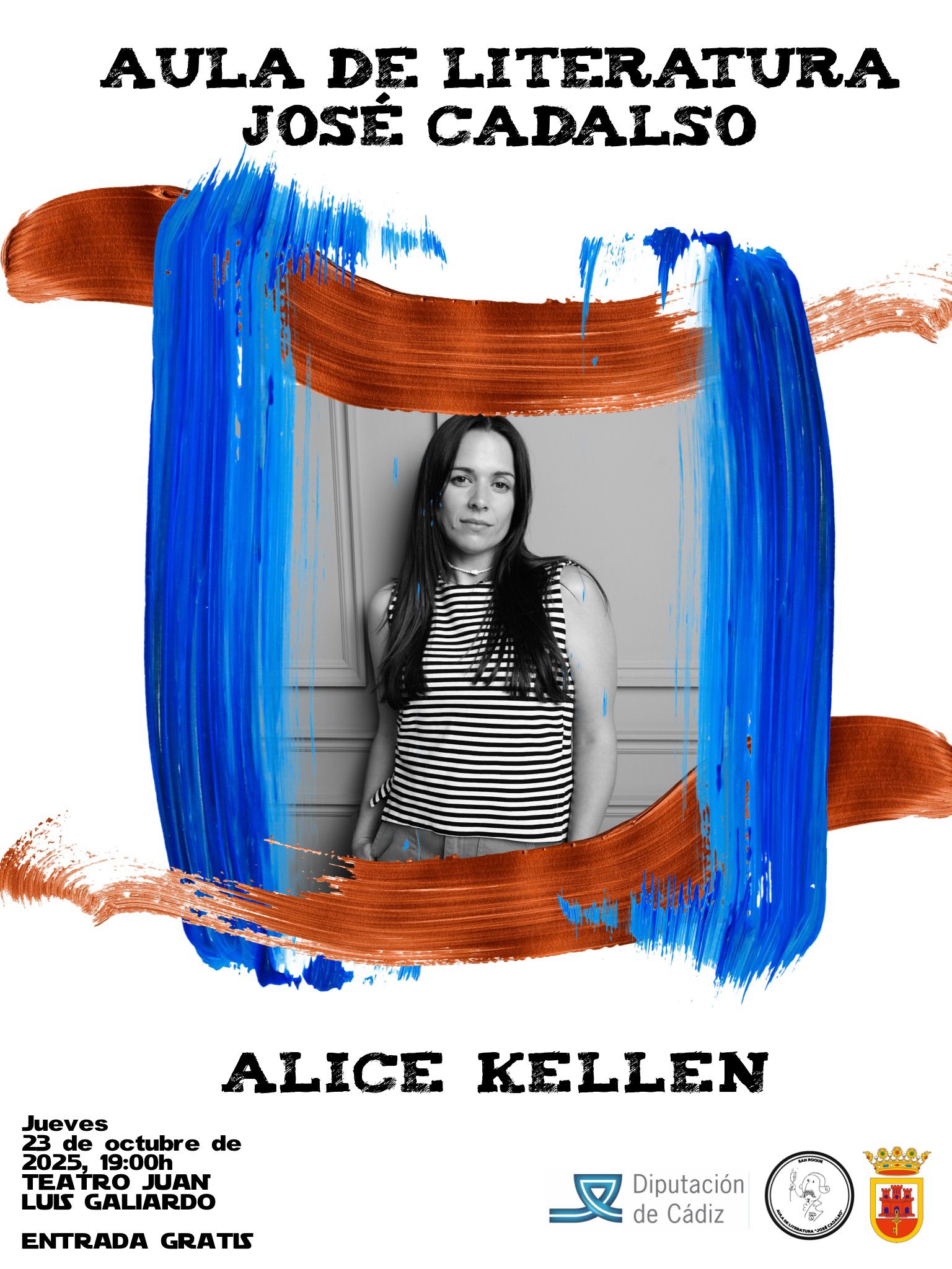 El teatro Juan Luis Galiardo acogerá esta nueva cita del Aula de Literatura “José Cadalso”, en esta ocasión, protagonizada por la escritora valenciana Alice Kellen. La cita será este jueves 23 de octubre a partir de las 19.00 horas, y como siempre la entrada será libre hasta completar aforo. Este acto está patrocinado por la Diputación de Cádiz.