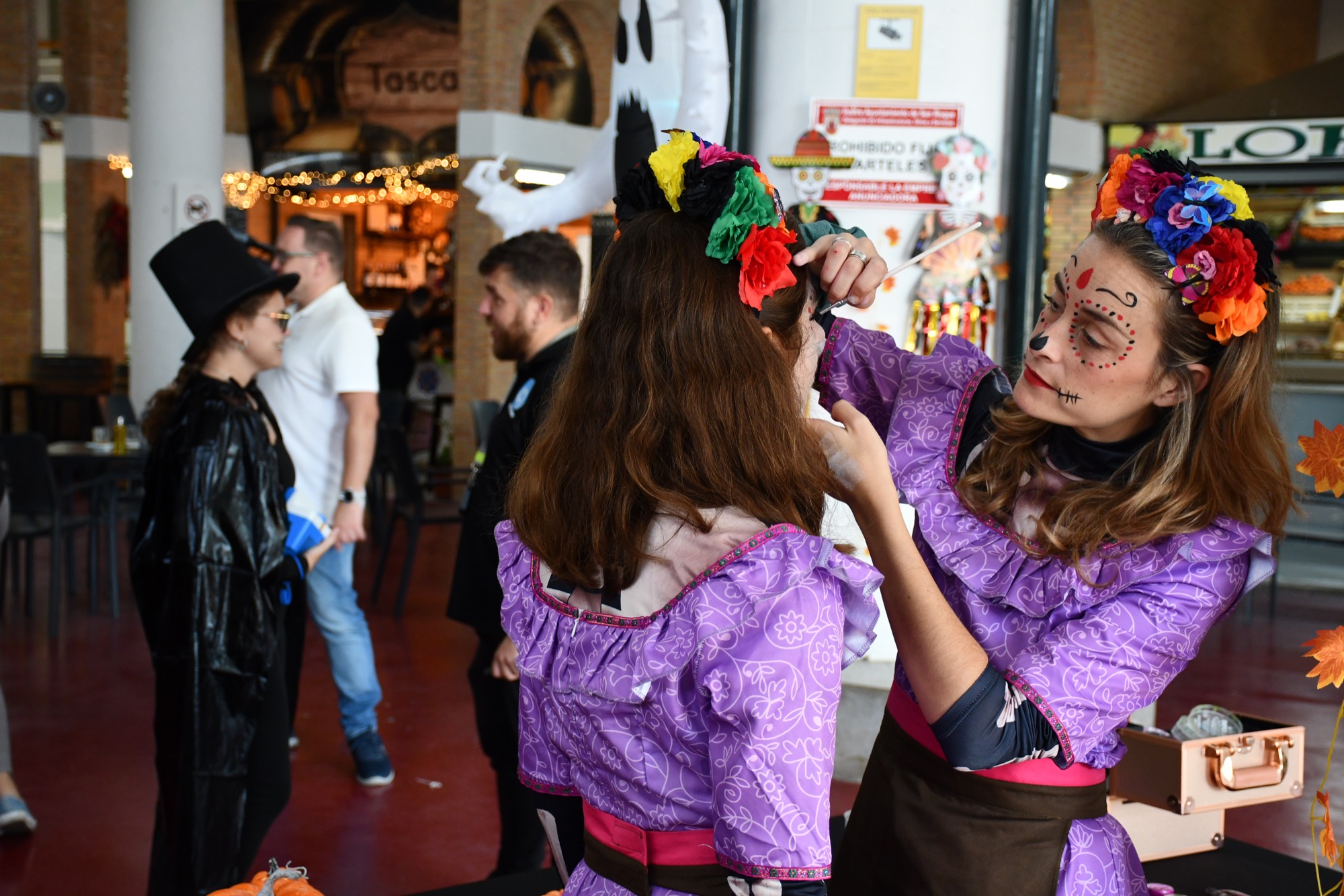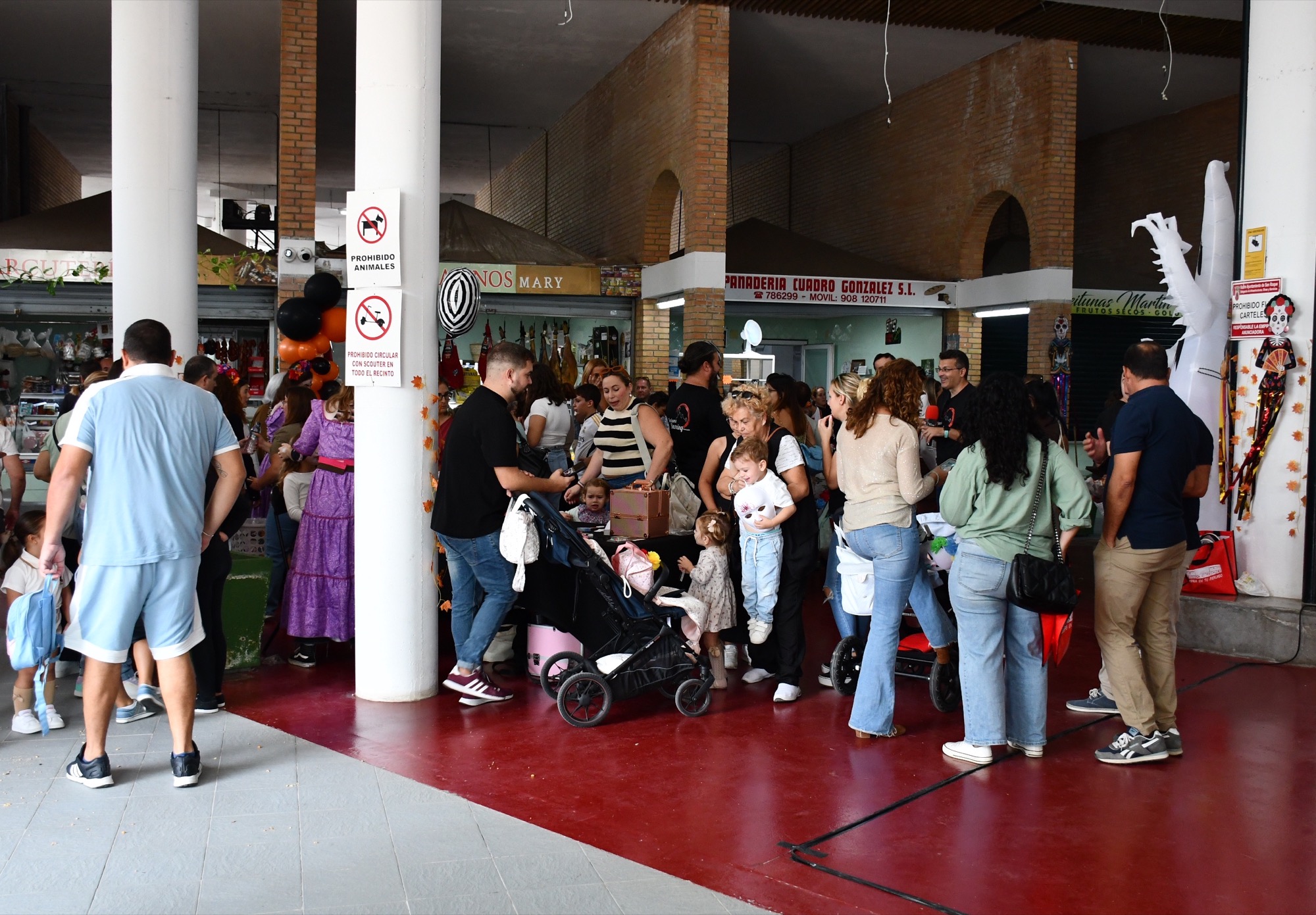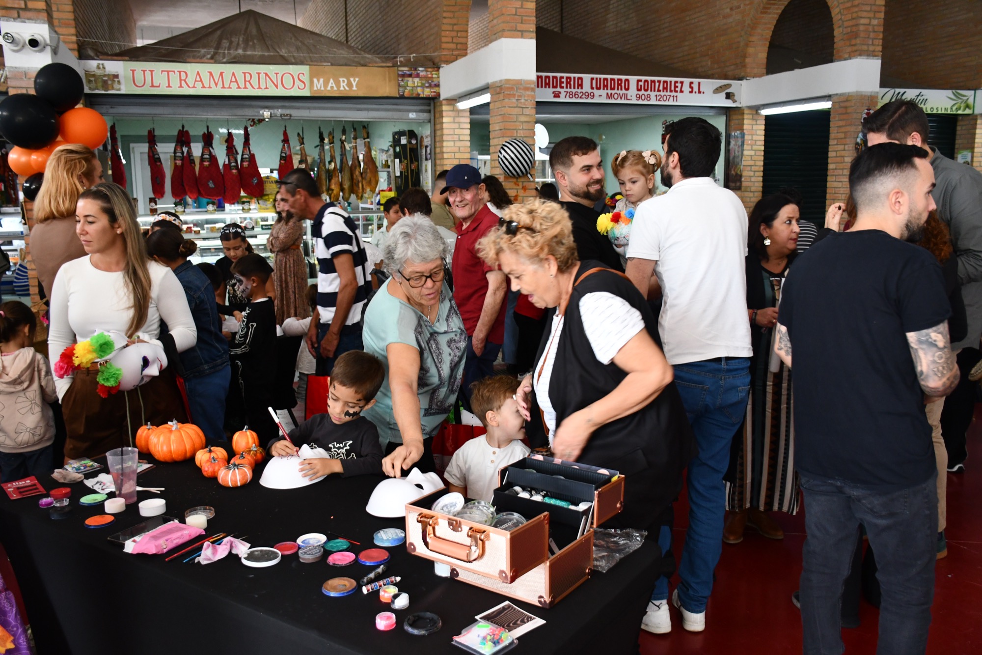 La mañana empezó con una serie de talleres en los que los pequeños podían pintar máscaras y calabazas, entre otros objetos relacionados con estas fechas, y también se les ofrecía maquillarles la cara con “looks” terroríficos. Mucha expectación generaron entre las familias los pases de baile de Soul Fusion, y los niños y niñas también pudieron disfrutar de frutos secos y caramelos que se les entregaban en los talleres, mientras que a los clientes de los locales se les dieron unas bolsas reutilizables con un mensaje impreso que anima a comprar en el mercado.