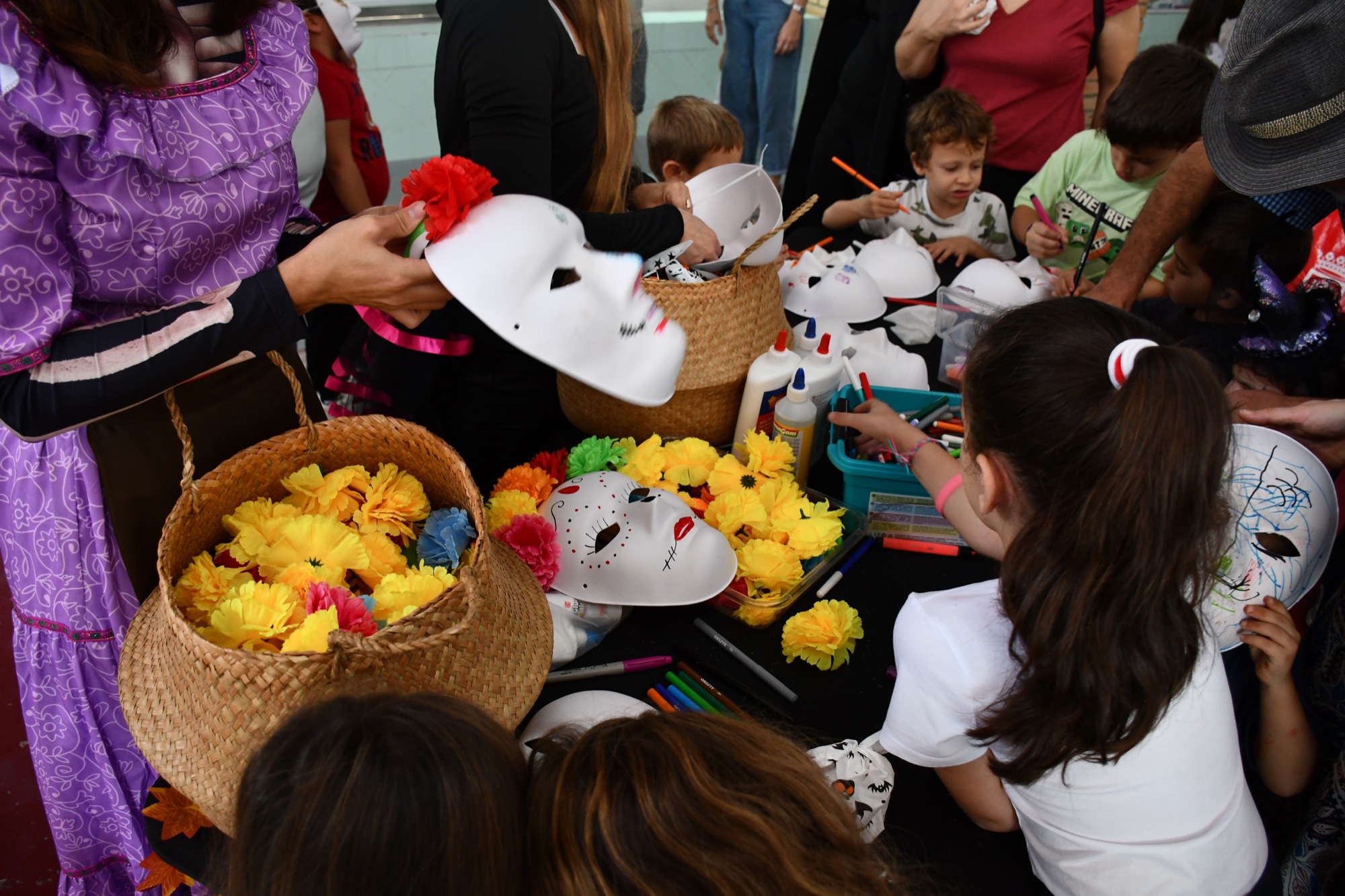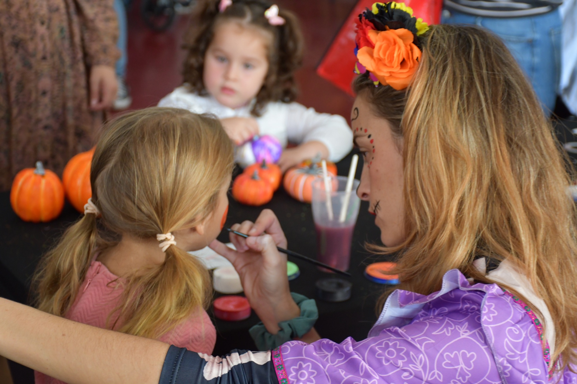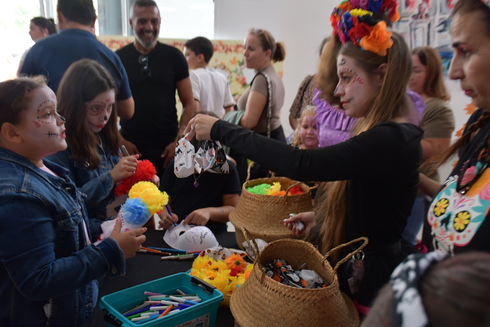 La mañana empezó con una serie de talleres en los que los pequeños podían pintar máscaras y calabazas, entre otros objetos relacionados con estas fechas, y también se les ofrecía maquillarles la cara con “looks” terroríficos. Mucha expectación generaron entre las familias los pases de baile de Soul Fusion, y los niños y niñas también pudieron disfrutar de frutos secos y caramelos que se les entregaban en los talleres, mientras que a los clientes de los locales se les dieron unas bolsas reutilizables con un mensaje impreso que anima a comprar en el mercado.