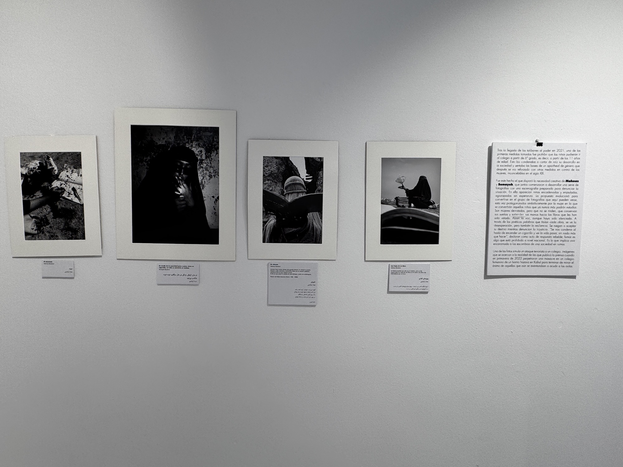 Es al grupo étnico hazara al que pertenecen Mahnaz y Somayeh Ebrahimi, dos fotógrafas en la veintena, cuya obra se rescata y se muestra por segunda vez en esta muestra. Sin apenas medios técnicos, y sin una cámara real, consiguieron sacar adelante un conjunto de fotografías, capturadas después de la llegada al poder de los talibanes en 2021, en las que plasman su realidad y su ficción.