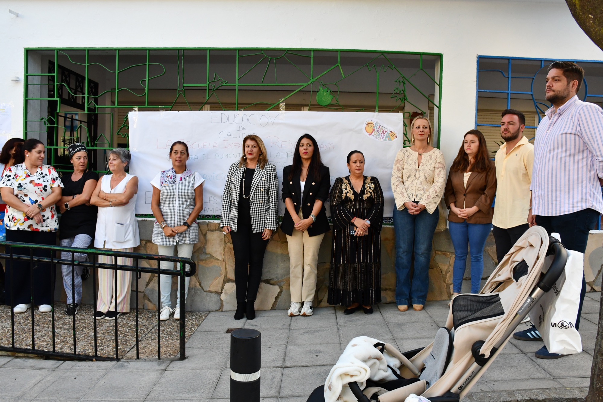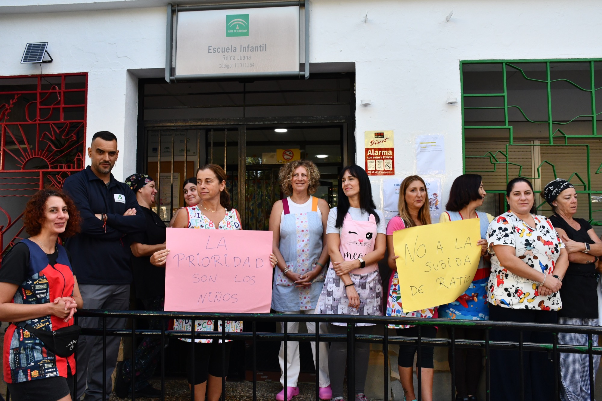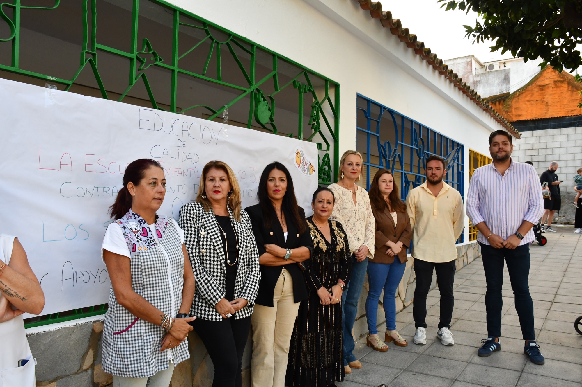 La teniente de alcalde de Educación, Belén Jiménez, junto a otros ediles del Equipo de Gobierno, ha mostrado presencialmente su respaldo a la Escuela Infantil “Reina Juana”, cuyo personal docente se ha concentrado durante media hora, este martes, a las puertas del centro en rechazo a las pretensiones de la Consejería de Educación de la Junta de Andalucía de incrementar el ratio de alumnos por clase. Esto perjudicaría tanto a la educación de calidad, como a las capacidades de los docentes de atender a los pequeños de 0 a 3 años. Al tratarse del único centro catalogado como escuela infantil de carácter público, sería el único afectado también en el municipio por el incremento de ratio de alumnos.