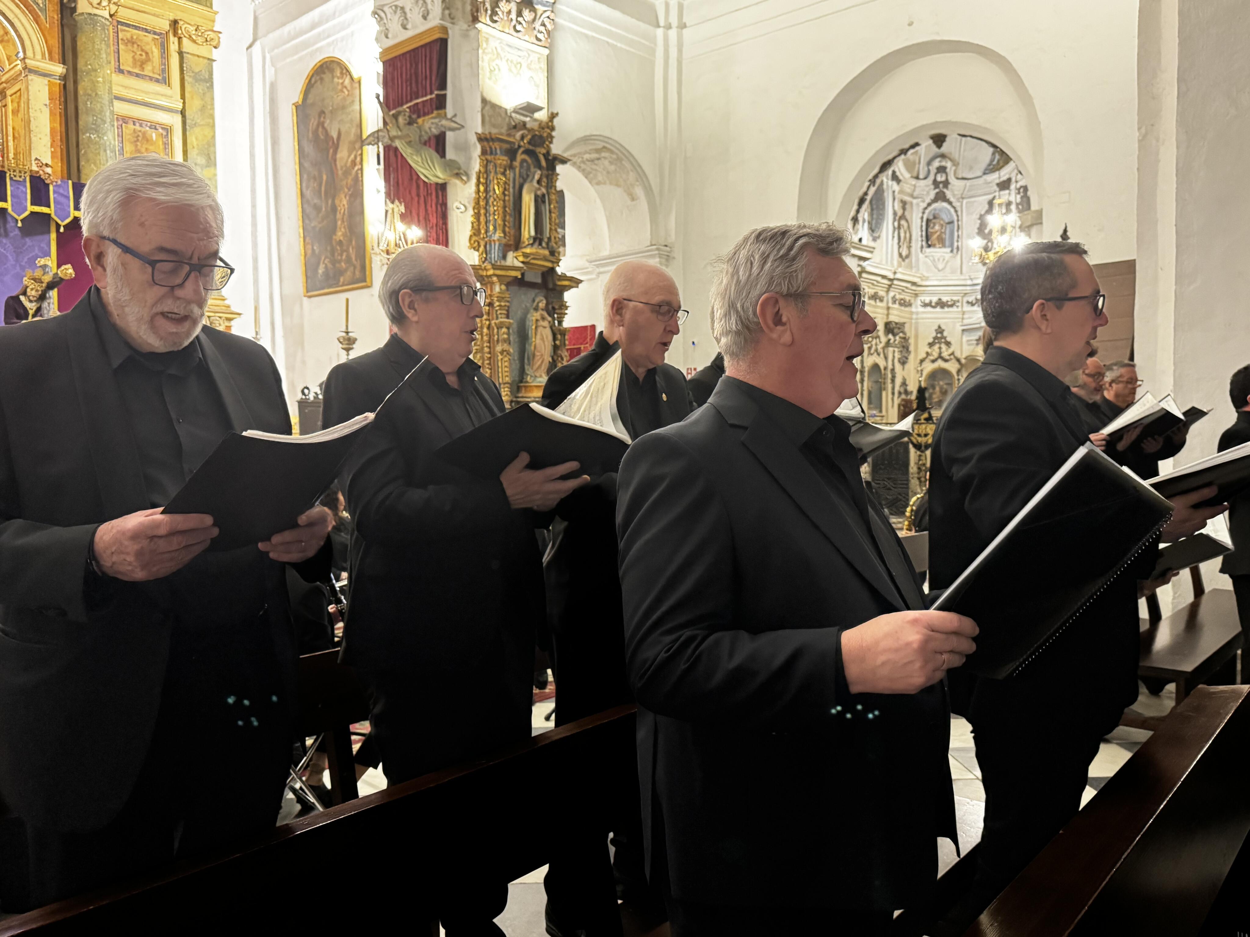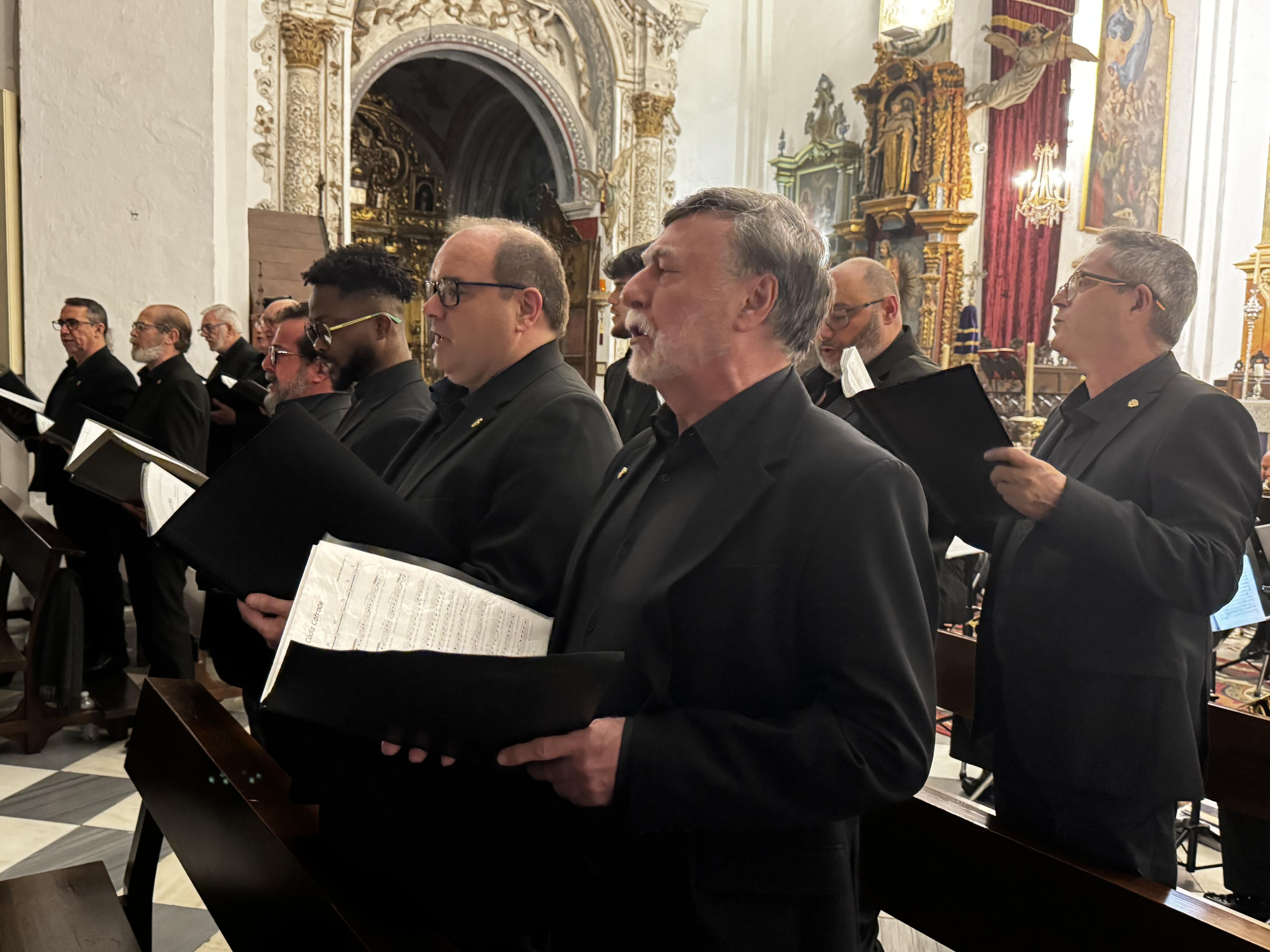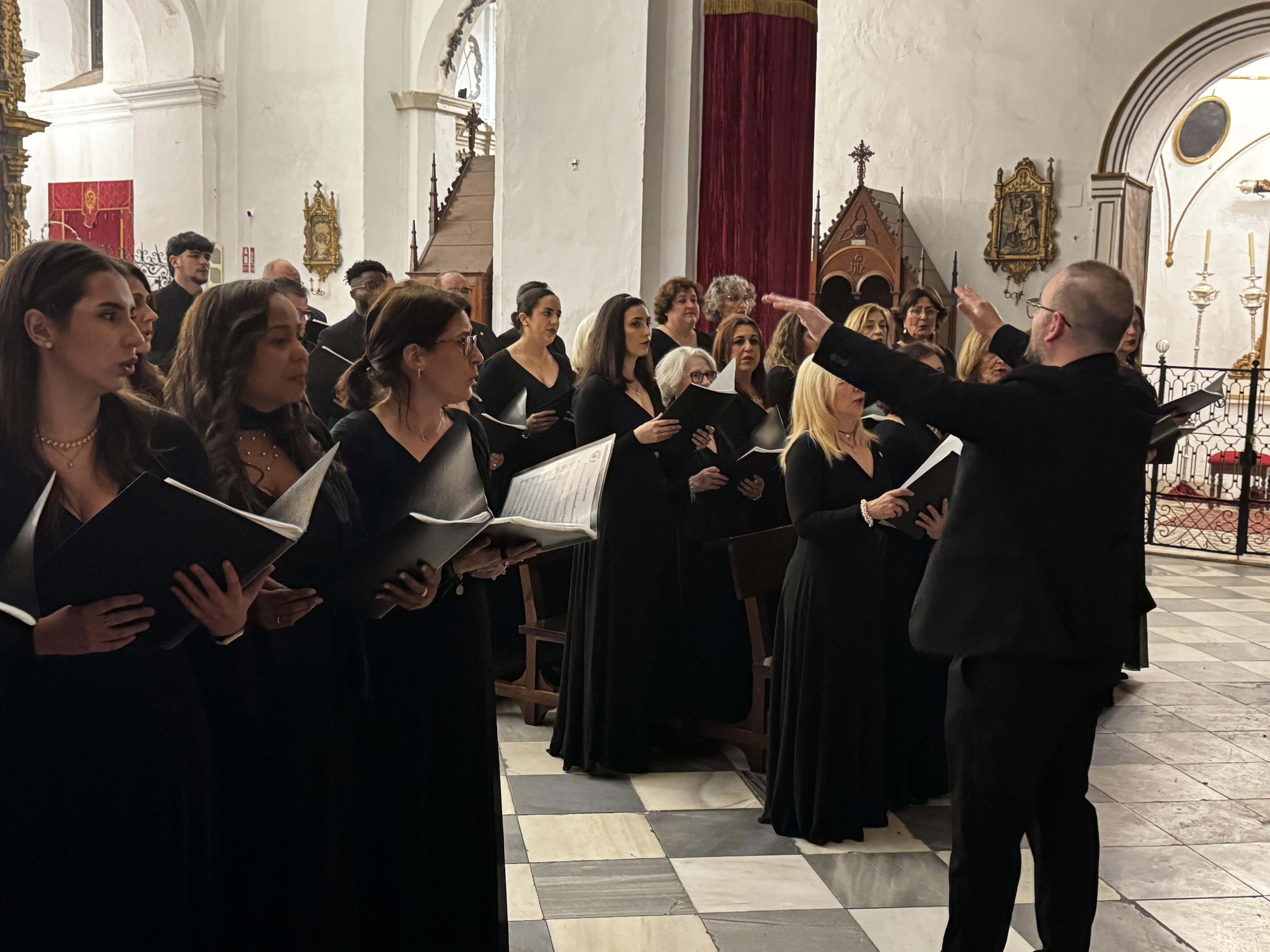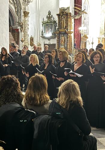 Bajo la dirección magistral de José Antonio Sánchez d’Ascensao, la Banda de Música de Jimena y la Coral Portus Albus de Algeciras interpretaron diez piezas de música sacra y marchas características de la Semana Santa, acompañadas por las voces de la coral algecireña.
