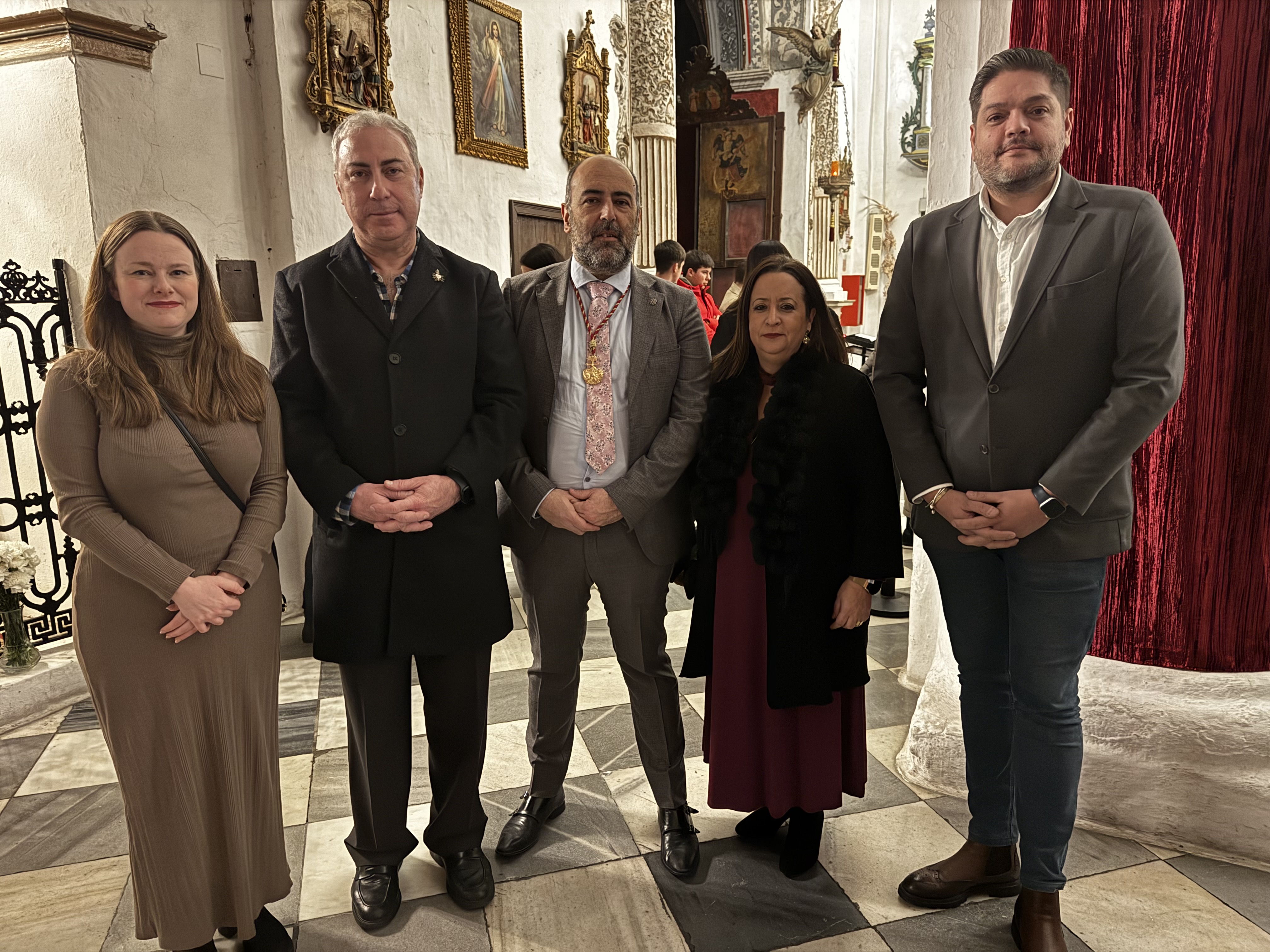 La teniente alcalde delegada de Tradiciones, María Collado, junto a otros ediles, al presidente del Consejo, José Luis Perales, y al párroco José Manuel Sánchez Cote, estuvieron presentes en el acto.