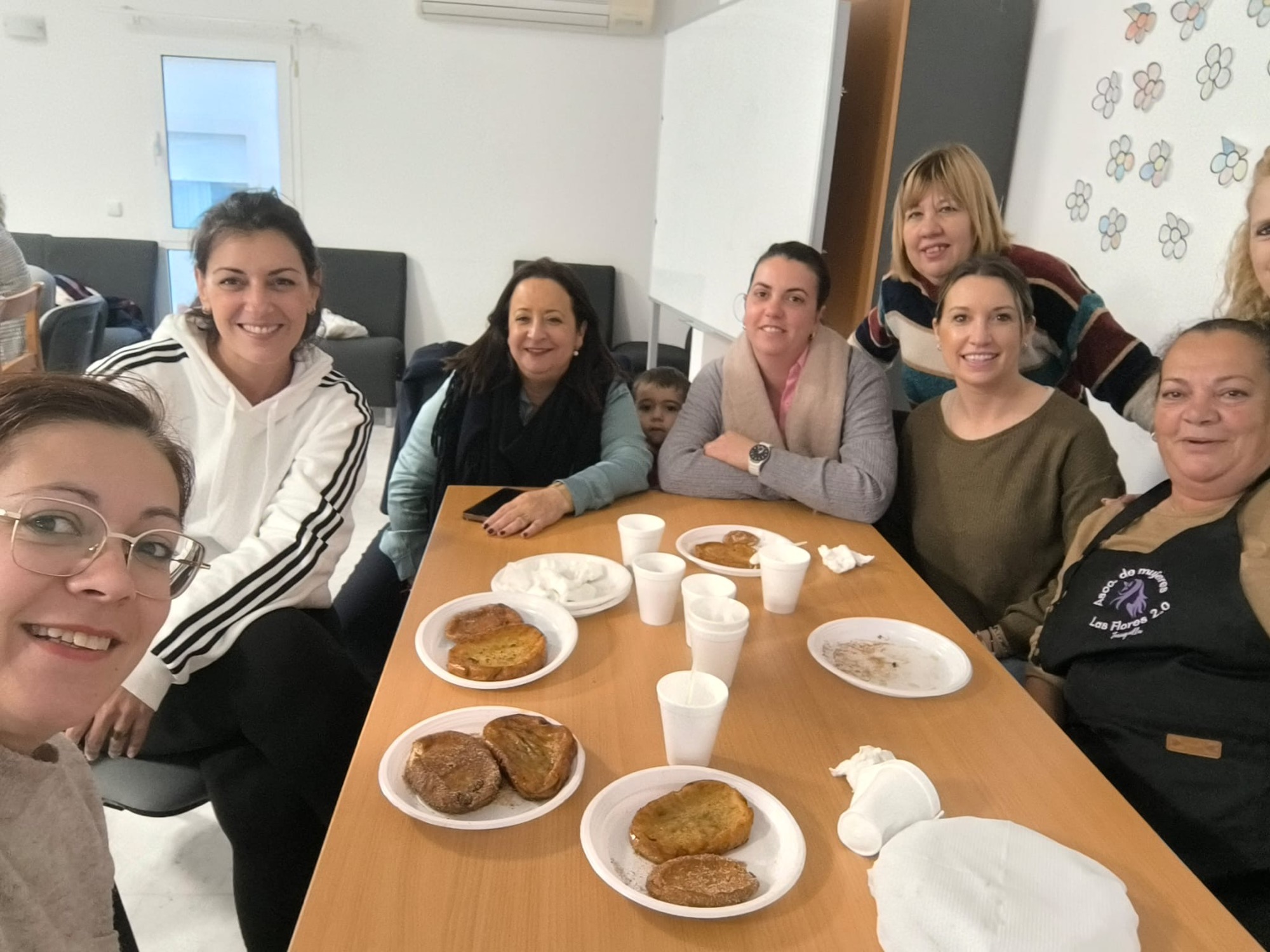 Por quinto año consecutivo las mujeres de la Asociación Las Flores 2.0 han celebrado una tarde de elaboración de torrijas que se convierte en una merienda con la que iniciar el ambiente de la cercana Semana Santa.