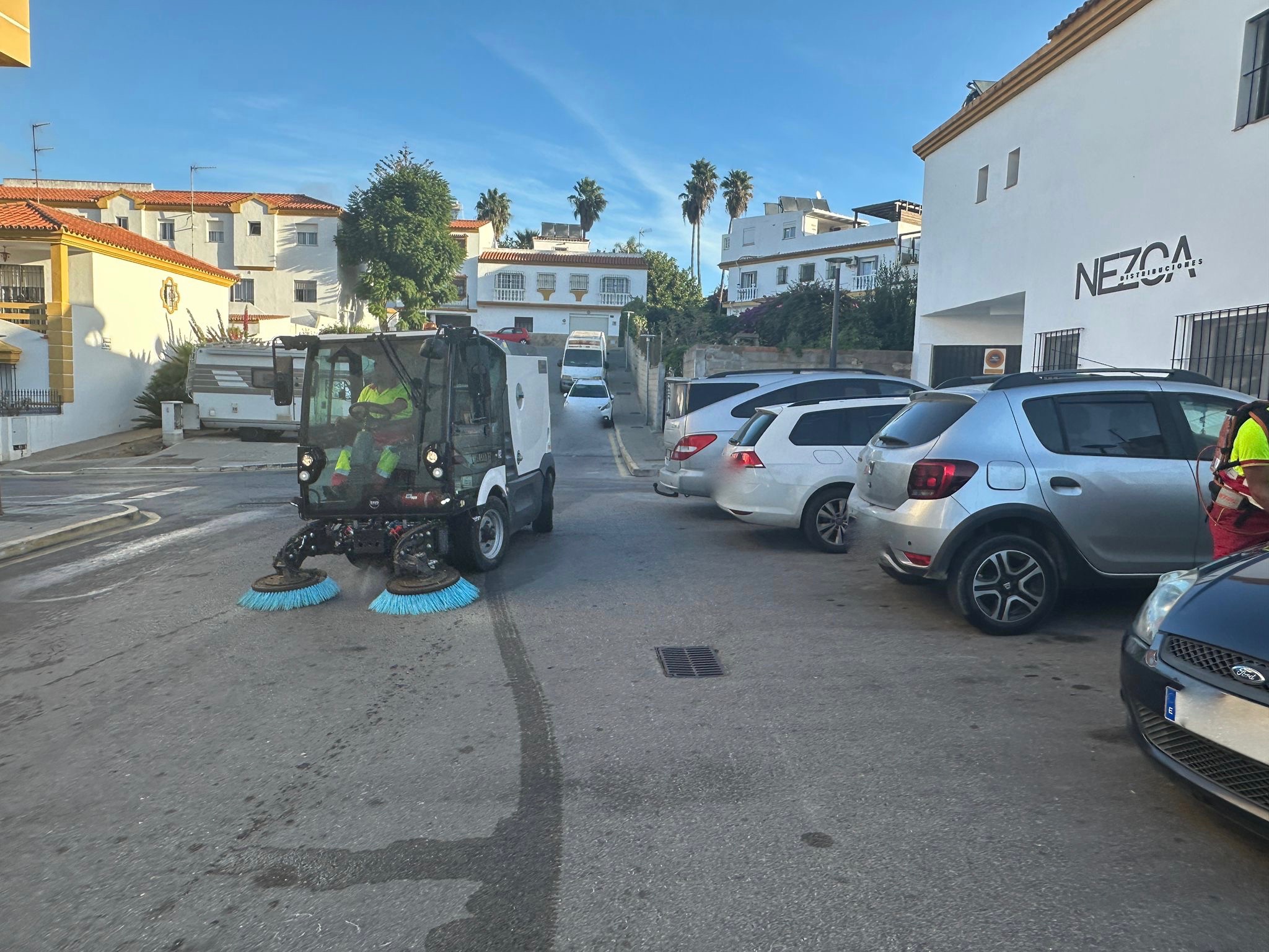 Operarios adscritos a Limpieza Viaria han acometido en la mañana de hoy, miércoles, una limpieza exhaustiva por la parte circundante a la barriada de Los Olivillos, en el casco, que comprende la zona del edificio de Emadesa y el campo municipal de fútbol Vicente Blanca, así como zonas residenciales.