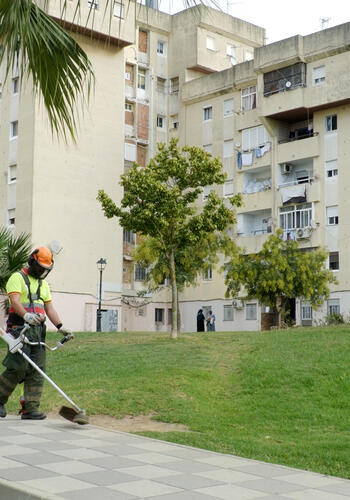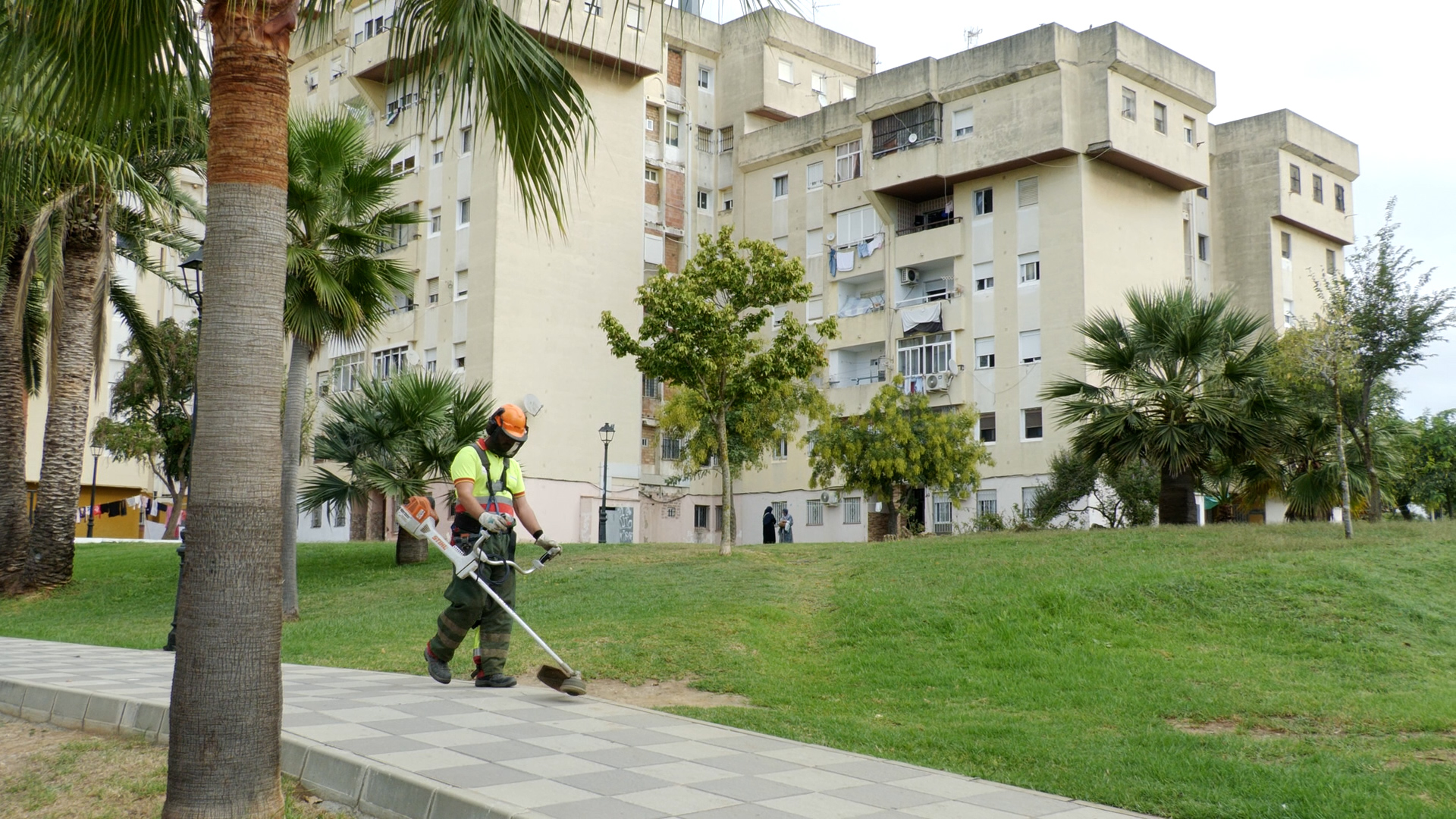 Trabajadores adscritos a Limpieza Viaria han realizado en la mañana de hoy, miércoles, una limpieza exhaustiva por la barriada de Miraflores, labores que complementan a los que se realizan a diario.