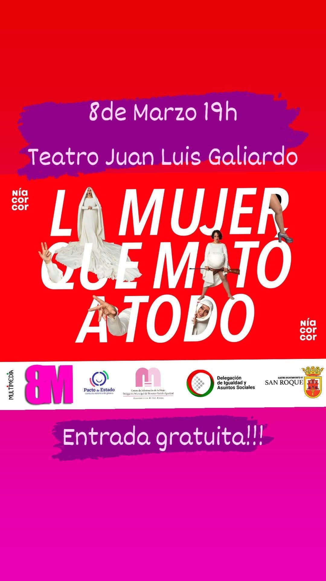 Con motivo del 8M día de la mujer, mañana domingo se pondrá en escena la obra de teatro "La mujer que mató a todo". Actividad organizada por la delegación de Igualdad del ayuntamiento de San Roque encabezada por la edil Eva Gil.