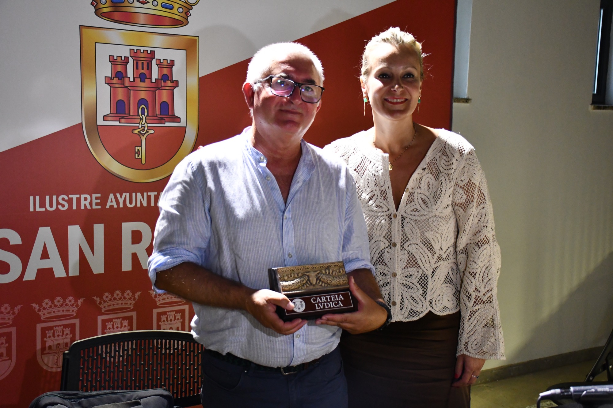 Al finalizar la conferencia, Ana Ruiz entregó al ponente un obsequio de agradecimiento, consistente en una réplica del bucráneo de Carteia. También apuntó que desde el Ayuntamiento se va a reivindicar la reanudación de los estudios arqueológicos en el yacimiento.