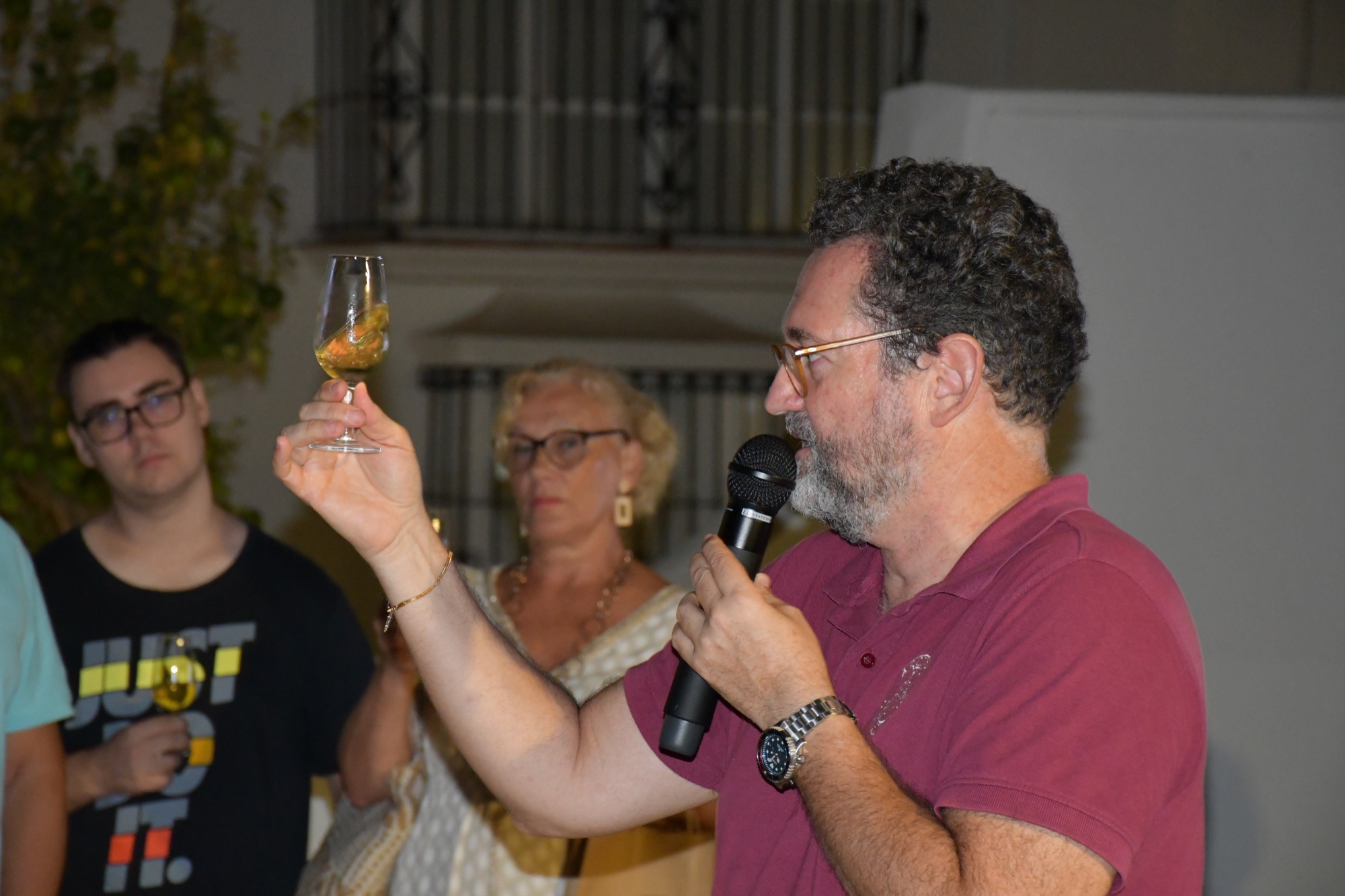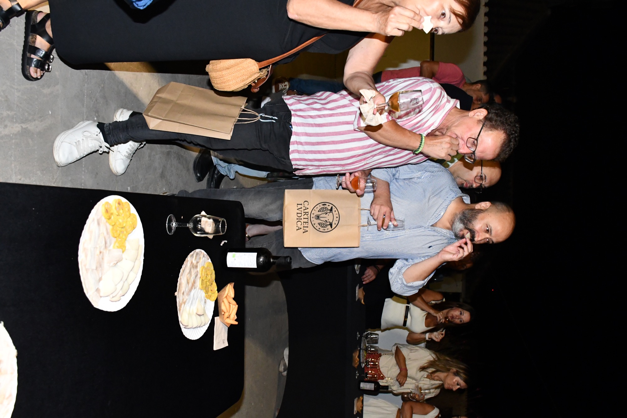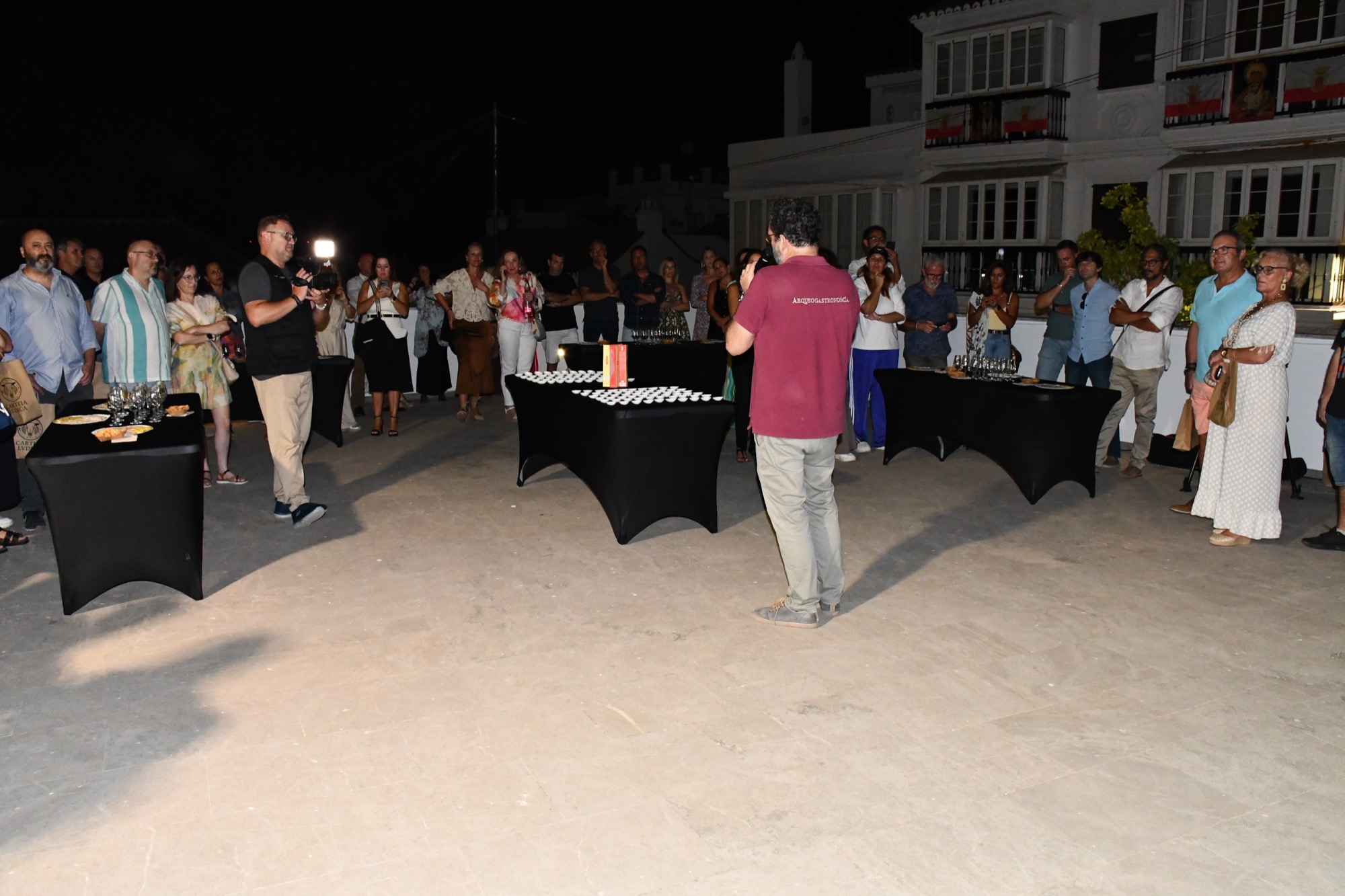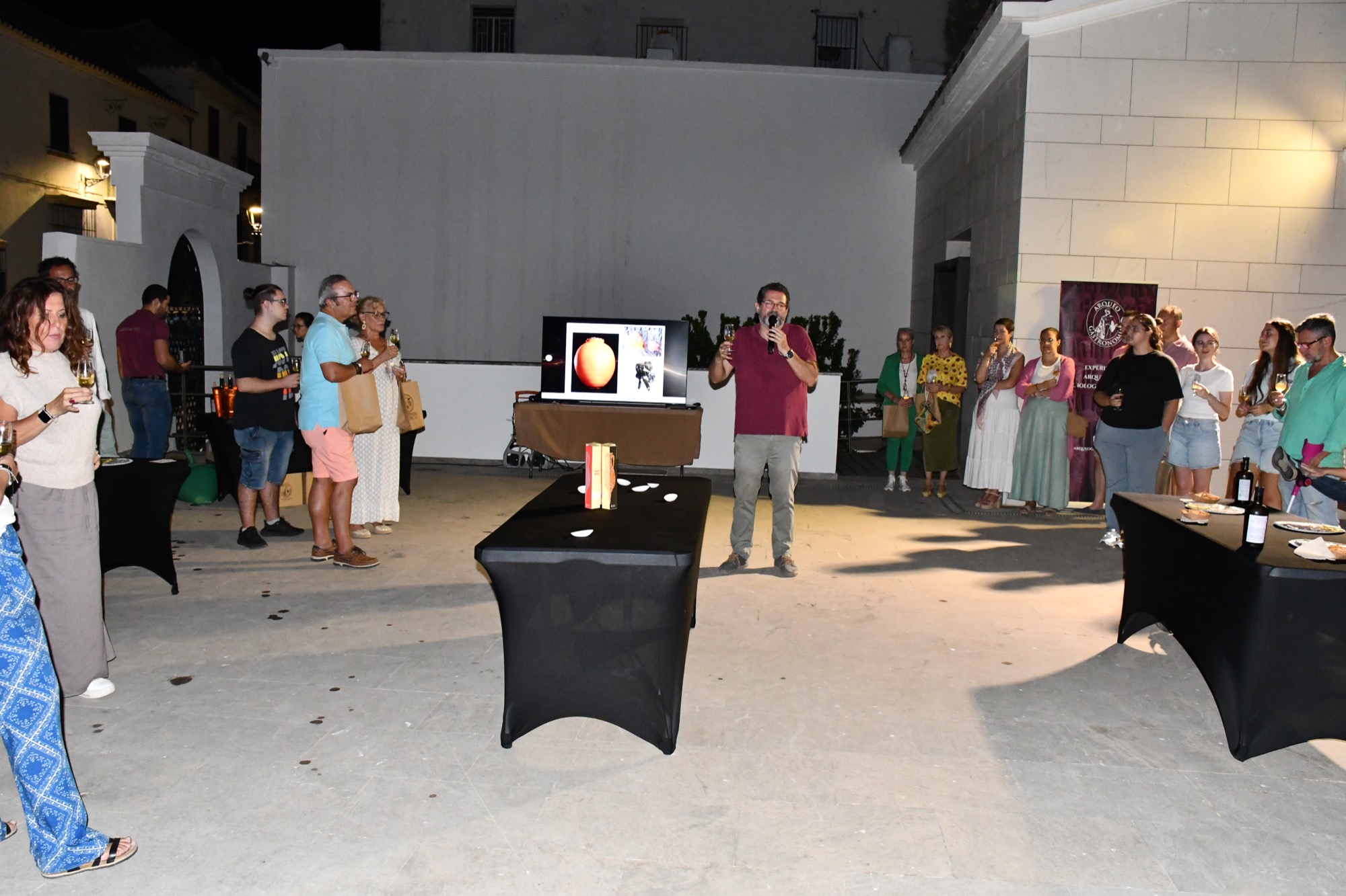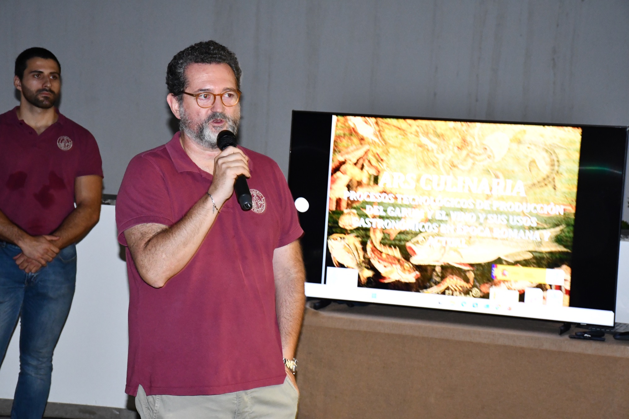 A continuación tuvo lugar una cata a cargo de la empresa Arqueogastronomía, especializada en recrear alimentos romanos a partir de textos de la época y de restos de productos encontrados en lugares como Pompeya o Baelo Claudia. El director científico de este proyecto, Manuel León, fue el encargado de explicar cómo se realizaba y se degustaba el gárum, así como el sistema de producción y el consumo de productos como el vino, el queso y los embutidos.