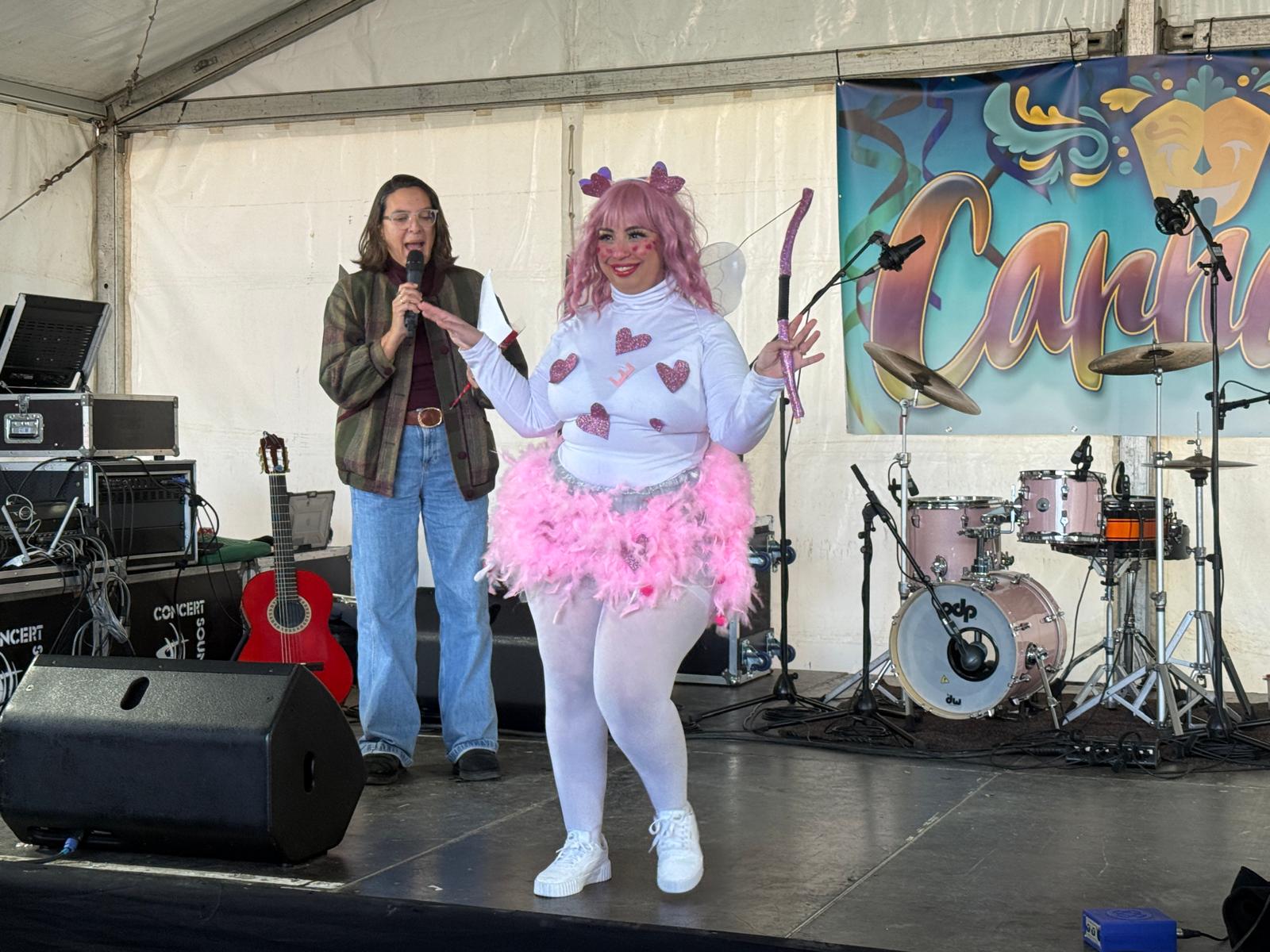 El Carnaval de Puente Mayorga, que se ha desarrollado este sábado 14 en la Alameda de San Pedro, ha contado con una gran participación en los actos de la mañana. Como novedad, y al celebrarse San Valentín, se ha instalado un photocall y se entregan flores.