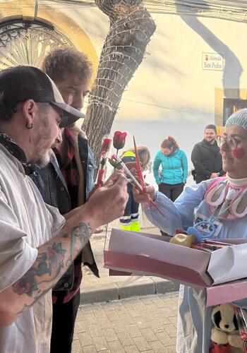 Por el día de los enamorados, se repartieron rosas a los asistentes.