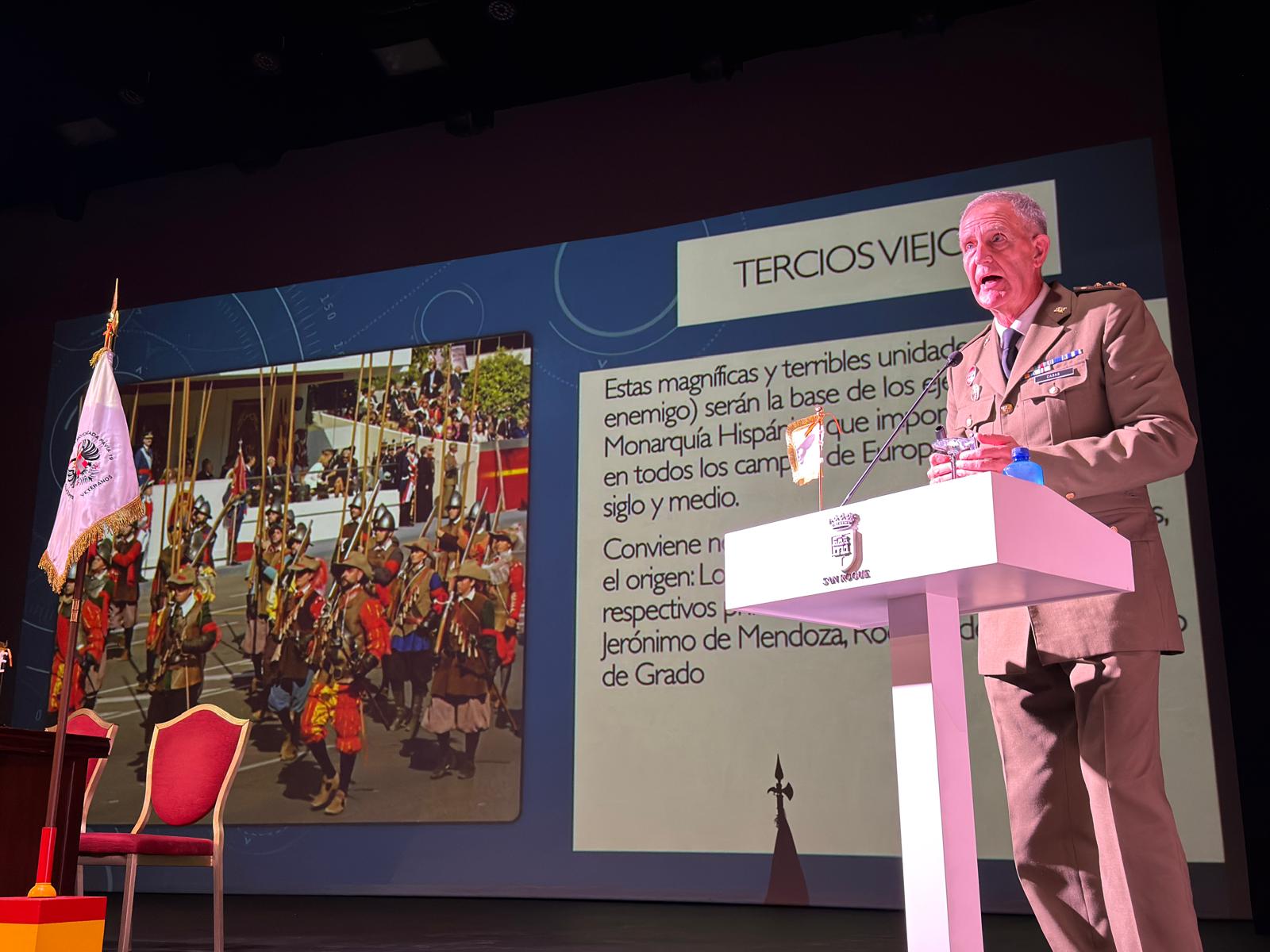 Antes, el Teatro Juan Luis Galiardo acogió la ponencia “Origen de los tercios españoles. Pavía su consagración definitiva”, que versó sobre la celebración del Ejército de Tierra en este 2025, de los cien años en los que los tercios españoles dominaron Europa, entre 1525 y 1625. Corrió a cargo del coronel del Ejército de Tierra Manuel Casas Santero, adscrito al Instituto de Cultura e historia Militar.