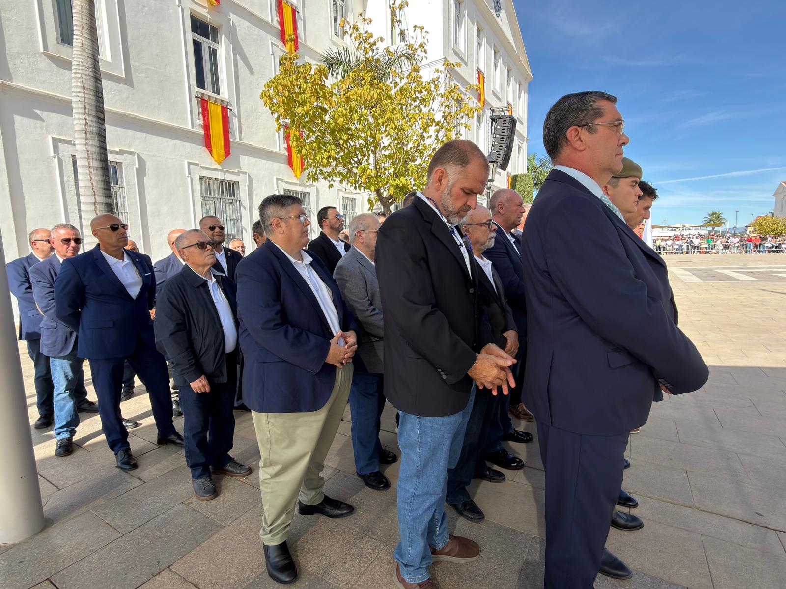 El alcalde de San Roque, Juan Carlos Ruiz Boix, los teniente de alcalde de Seguridad Ciudadana, David Ramos, y de Tradiciones, María Collado, y la práctica totalidad de los ediles de la Corporación, participaron en los actos, en los que también fueron invitados otras autoridades civiles y militares