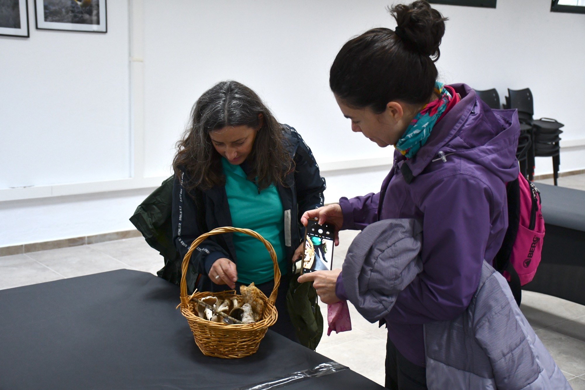 En cuanto a la búsqueda de setas, se desarrolló por parajes cercanos al Aula de la Naturaleza. Los participantes se dividieron en tres grupos, cada uno de ellos a cargo de guías expertos, que les ayudaron a identificar los ejemplares que se iban encontrando. Debido a que este otoño no ha llovido mucho, y cuando lo ha hecho ha sido de manera torrencial, la mayoría de los hallazgos eran de saprófitas, hongos que se alimentan de materia orgánica muerta, como madera u hojas caídas. Algunas de estas setas eran comestibles, como macrolepiotas y algunas variedades de champiñones.