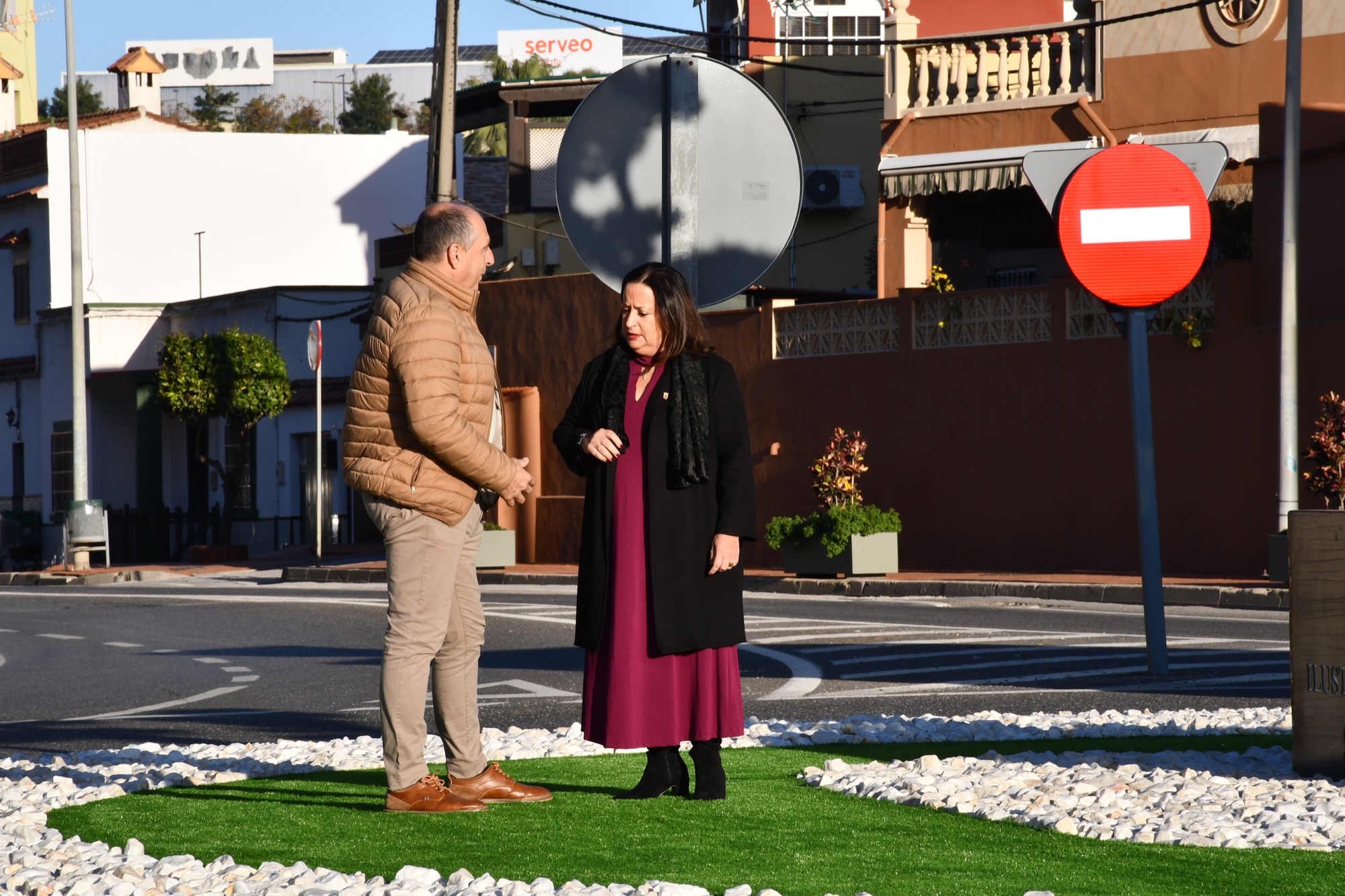 Explicó la delegada de Urbanismo que se ha finalizado la obra de rehabilitación de la glorieta situada en la entrada de la barriada, para lo que previamente hubo que solicitar permiso al Ministerio de Transportes y Movilidad Sostenible. Destacó Collado que se ha plantado un olivo centenario, que se eleva a unos tres metros de altura, y también se han trazado unos anillos de grava blanca y césped artificial.