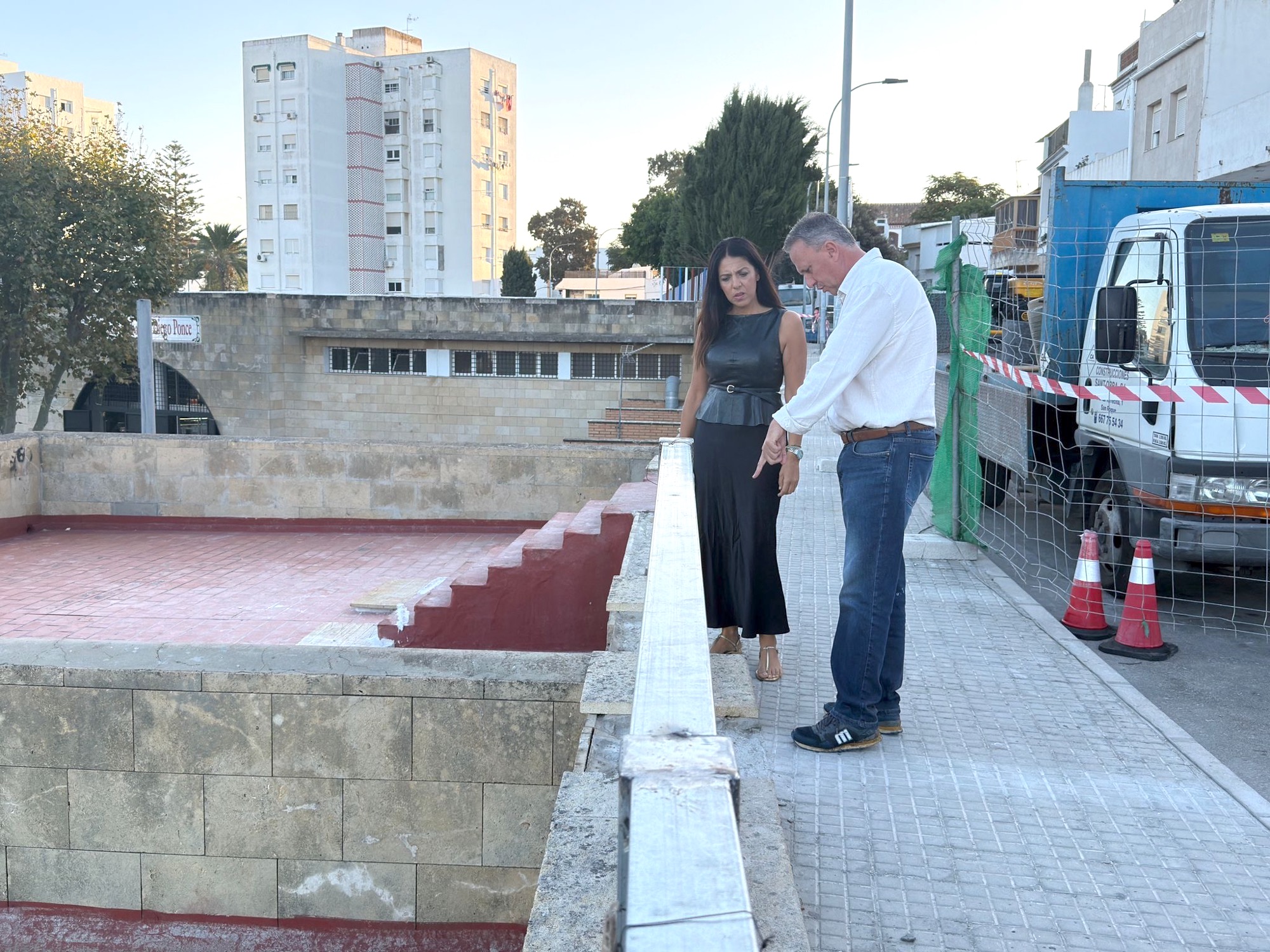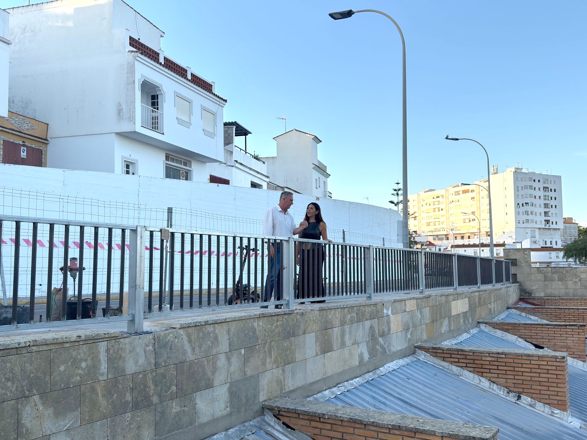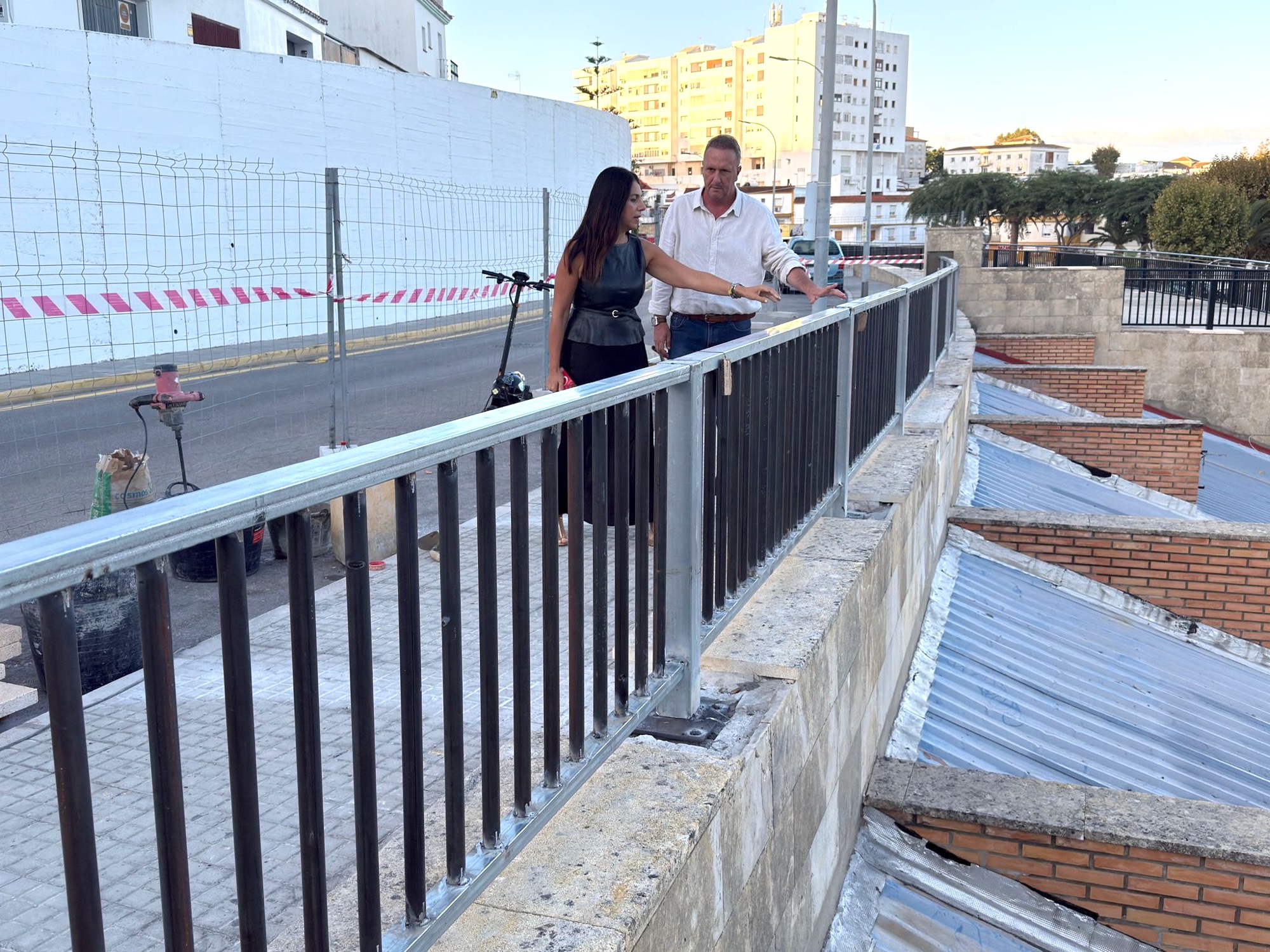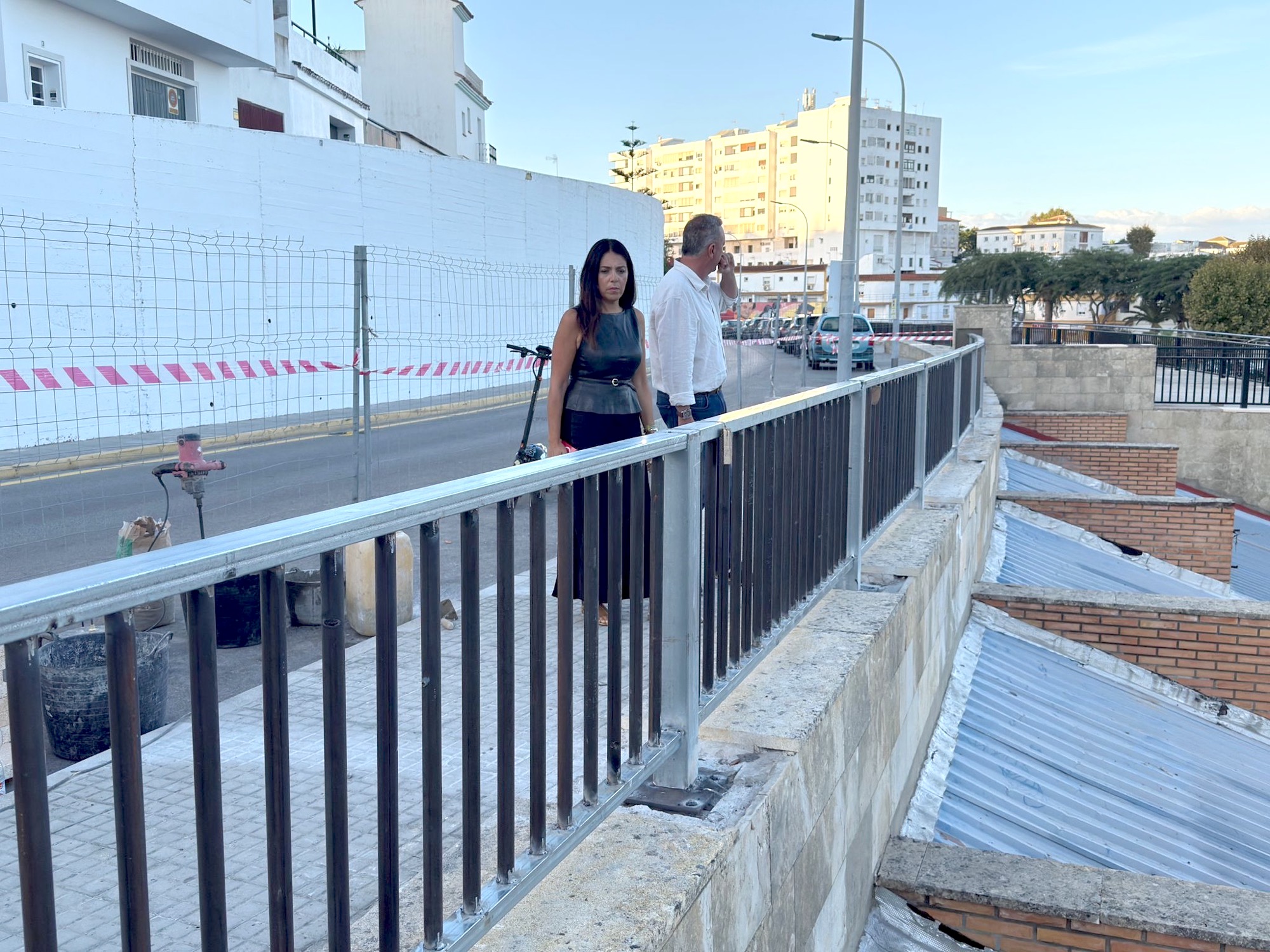 La teniente de alcalde delegada de Obras y Servicios, Belén Jiménez, ha visitado la Avenida Elvira Castilla del Pino con motivo de la segunda fase de los trabajos que se realizan en esta vía de San Roque Ciudad. En concreto, se están sustituyendo las antiguas barandillas a lo largo de unos 200 metros por otras que cumplen la normativa actual.