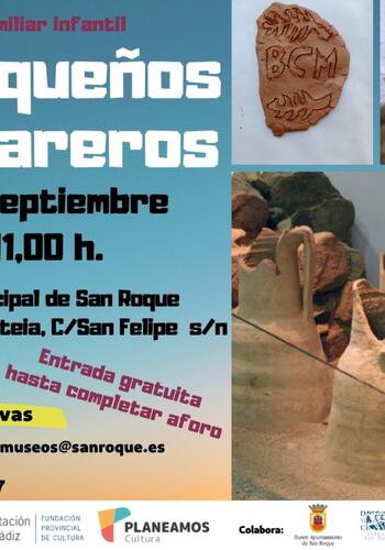 El Museo Carteia acogerá el próximo domingo 10 de septiembre la actividad infantil “Pequeños alfareros”, pensada para introducir a niños y niñas de la manera más divertida en el mundo de la alfarería romana y del comercio en dicha época. De entrada gratuita hasta completar aforo, se recomienda reservar plaza en el correo electrónico actividades.museos@sanroque.es.