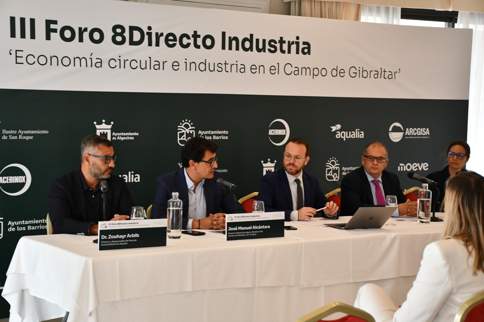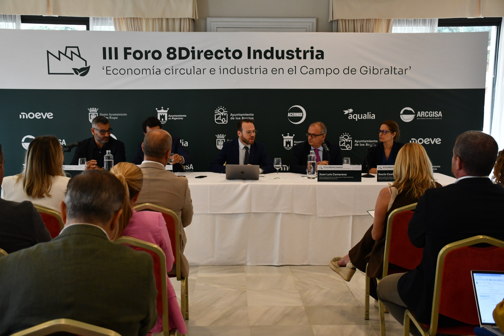 El III Foro 8Directo Industria, celebrado en la mañana de este lunes, ha contado con la presencia de miembros del equipo de gobierno municipal. El debate ha girado en torno a la economía circular y la industria en el Campo de Gibraltar.