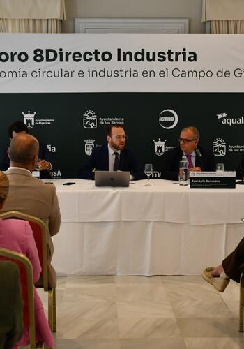 En la mesa se encontraban responsables de las empresas Aqualia y Arcgisa, así como de las empresas Acerinox y Moeve, y el debate ha sido conducido por el director de 8Directo, organizador del encuentro.